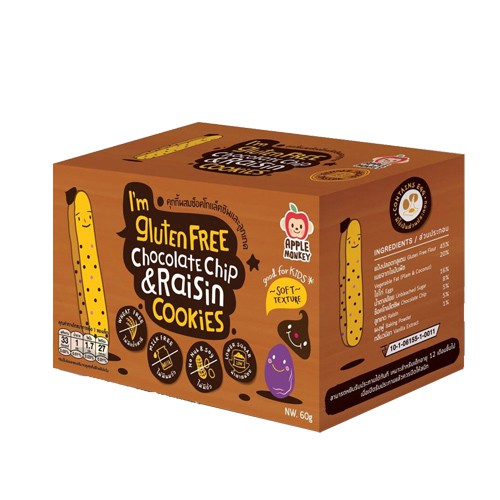 Apple Monkey คุกกี้ปลอดกลูเต็น แพค 3 ซอง 60 กรัม