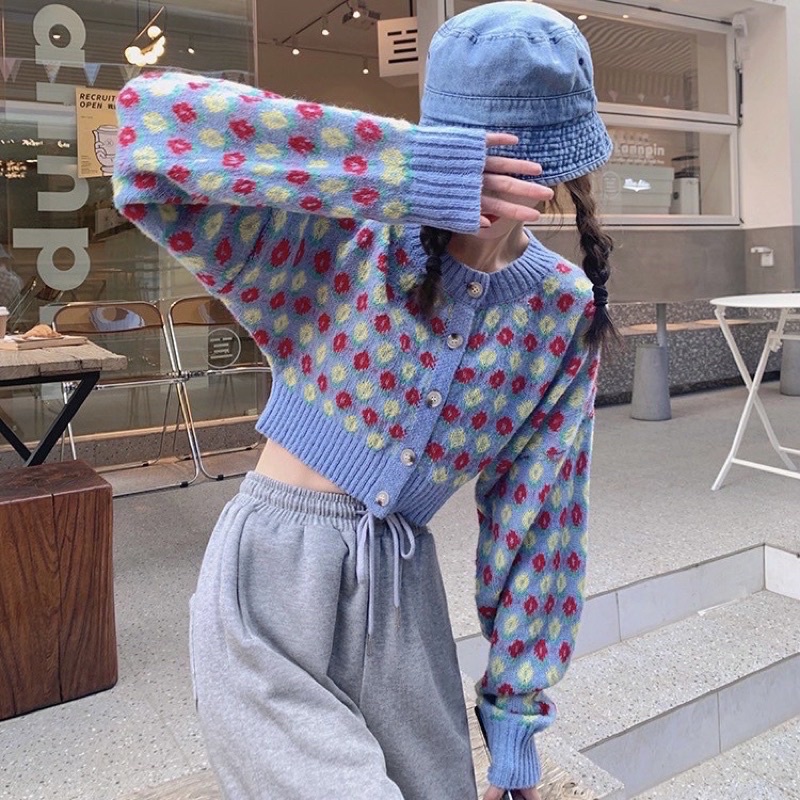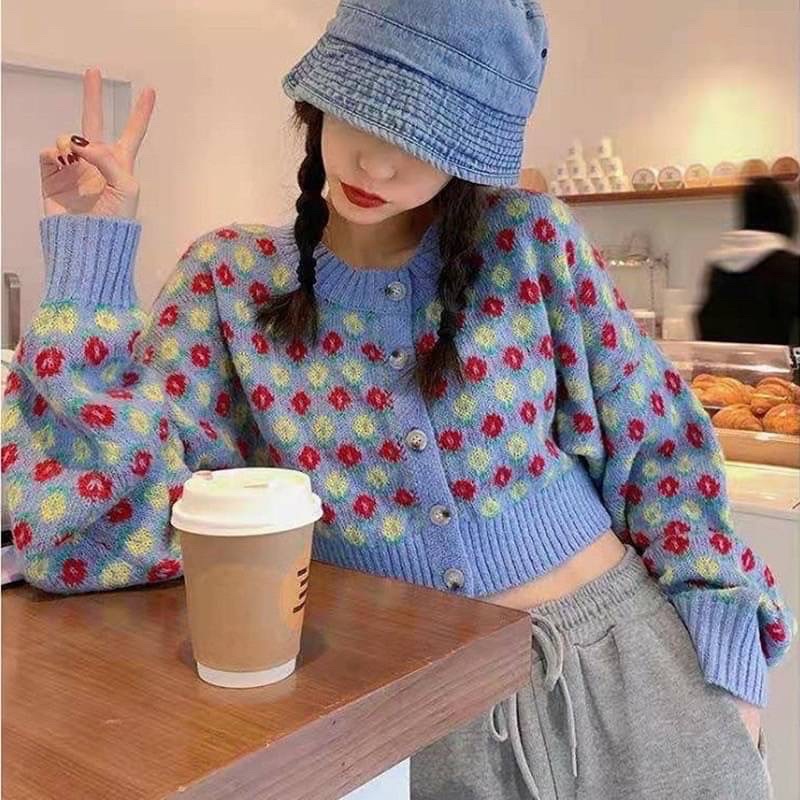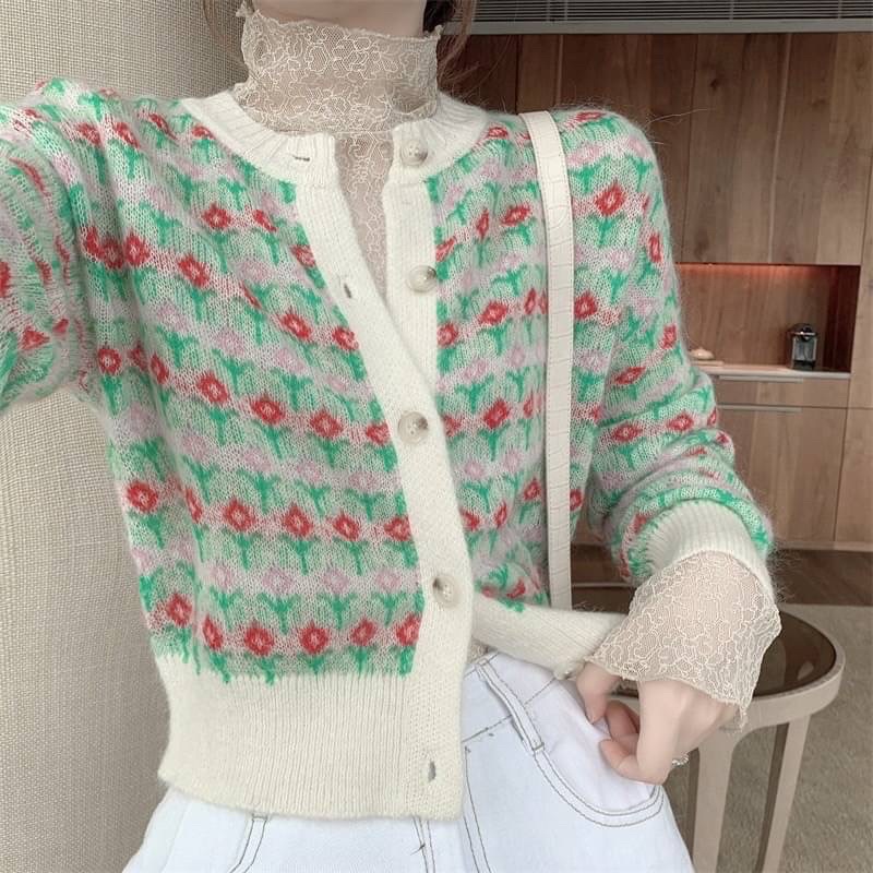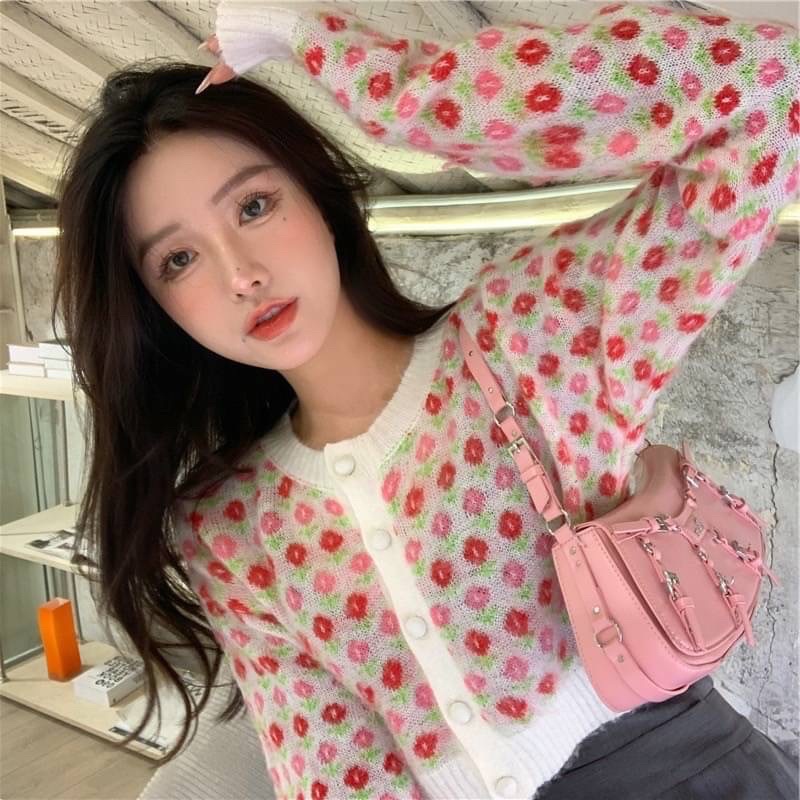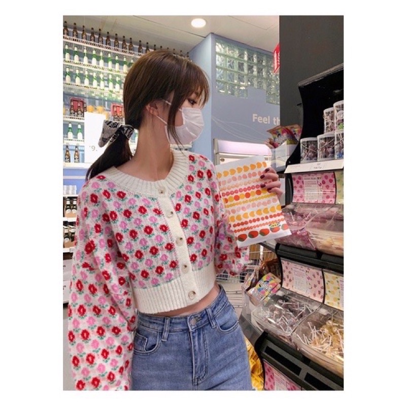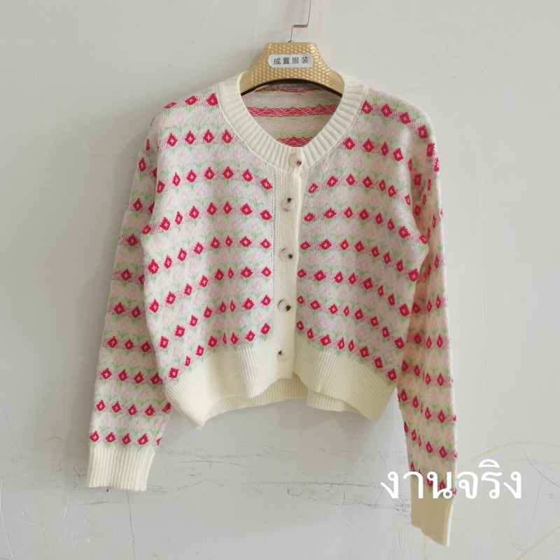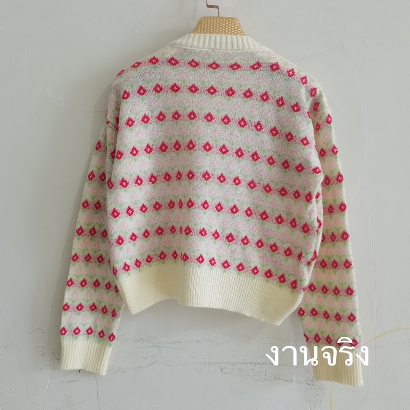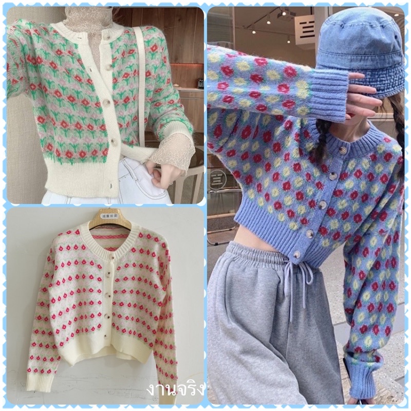 👏พร้อมส่งจากไทย👏คาร์ดิแกนไหมพรมทอลายดอกไม้ เสื้อไหมพรมกระดุมหน้า ลายน่ารักมี3สี งานจริงสวยมาก สไตล์เกาหลี🍒