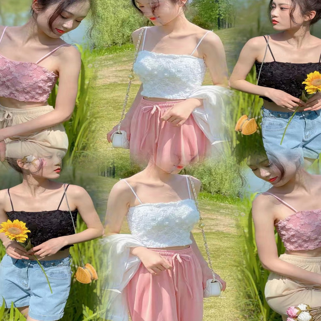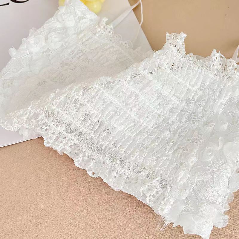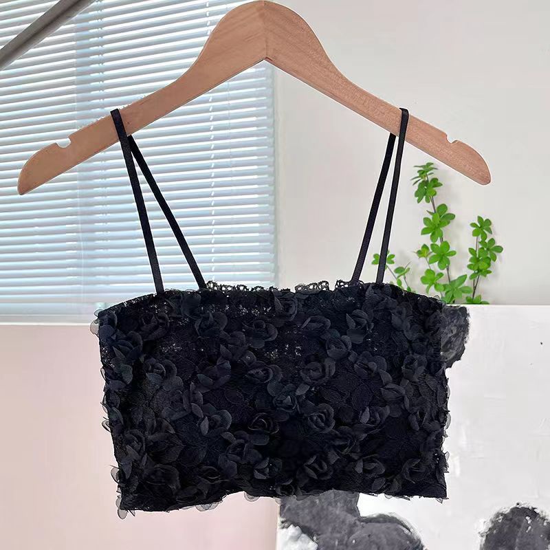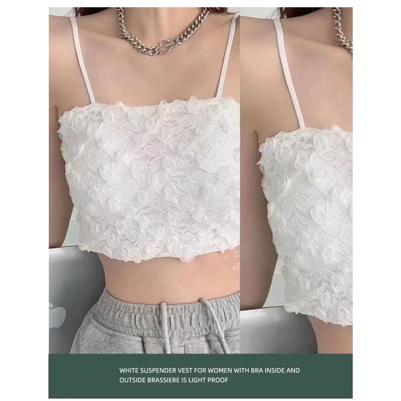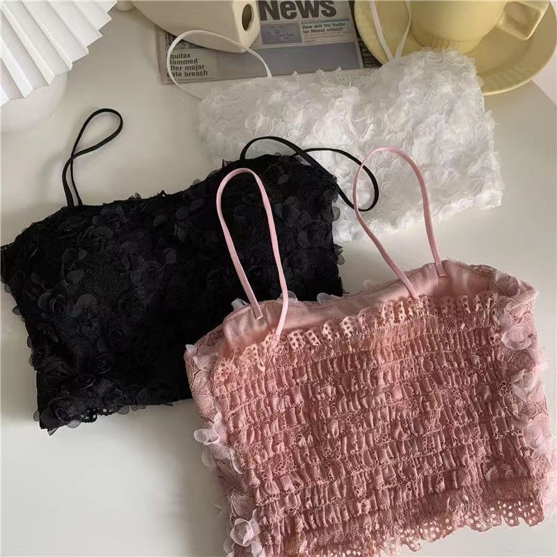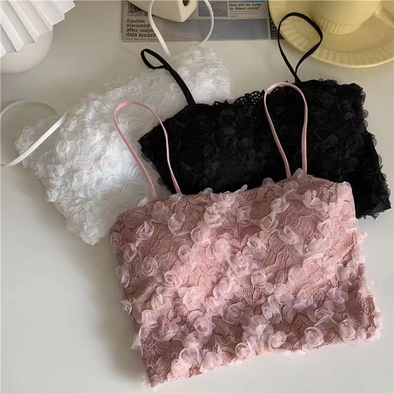 เสื้อลูกไม้ มีฟองน้ำ สายเดี่ยว ดีเทลลายดอกกุหลาบน่ารักมาก สวยมาก. 3157#