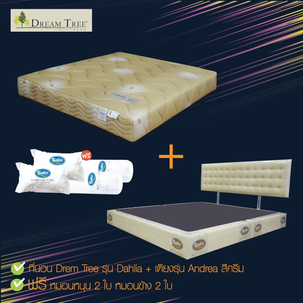 ที่นอน Dream Tree รุ่น Dahlia + เตียง รุ่น Andrea ขนาด 6 ฟุต ฟรีหมอนหนุน 2 + ฟรีหมอนข้าง 2 ส่งฟรี