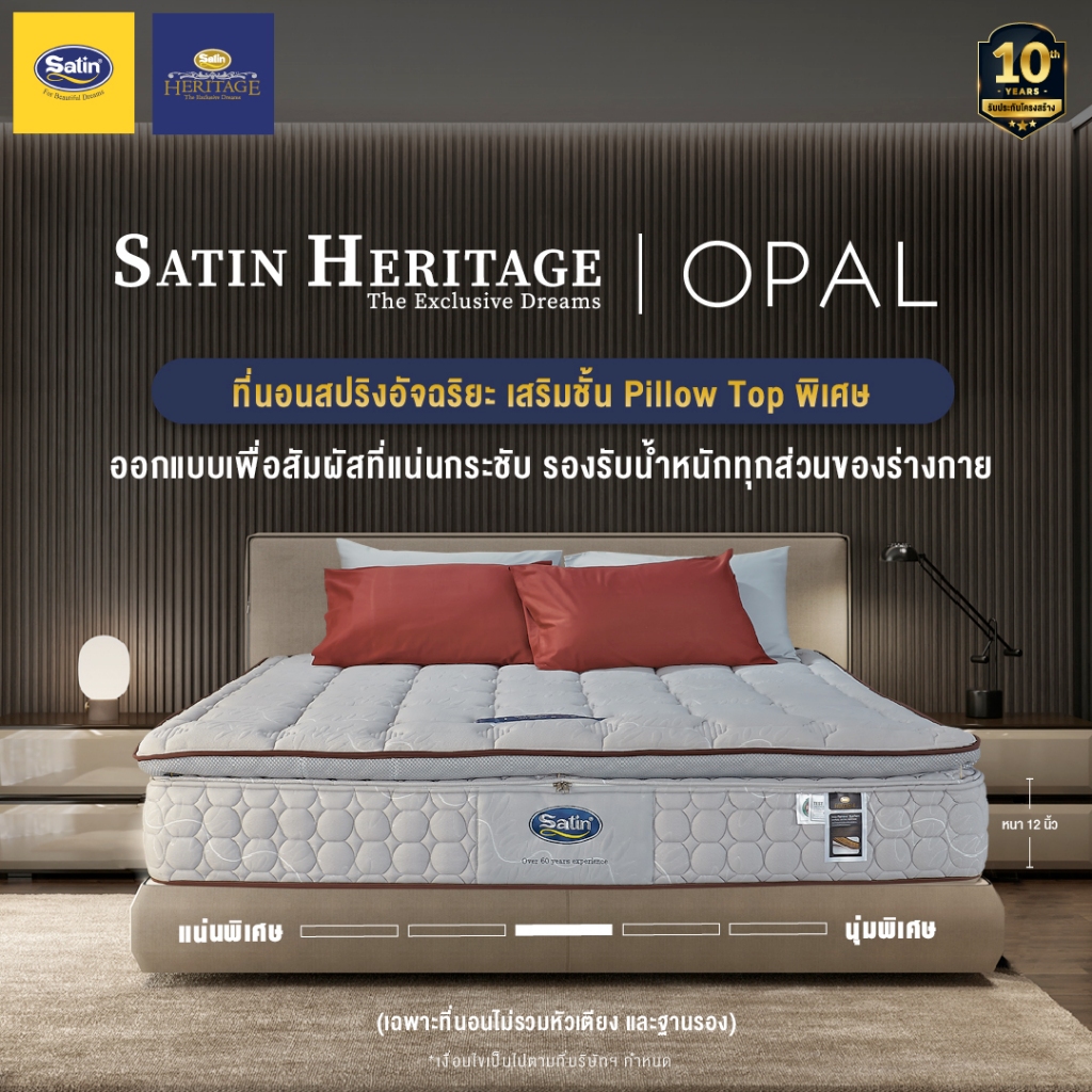 Satin Heritage ที่นอนสปริงอัจฉริยะ เสริมชั้น Pillow Top พิเศษ รุ่น Opal หนา 12 นิ้ว