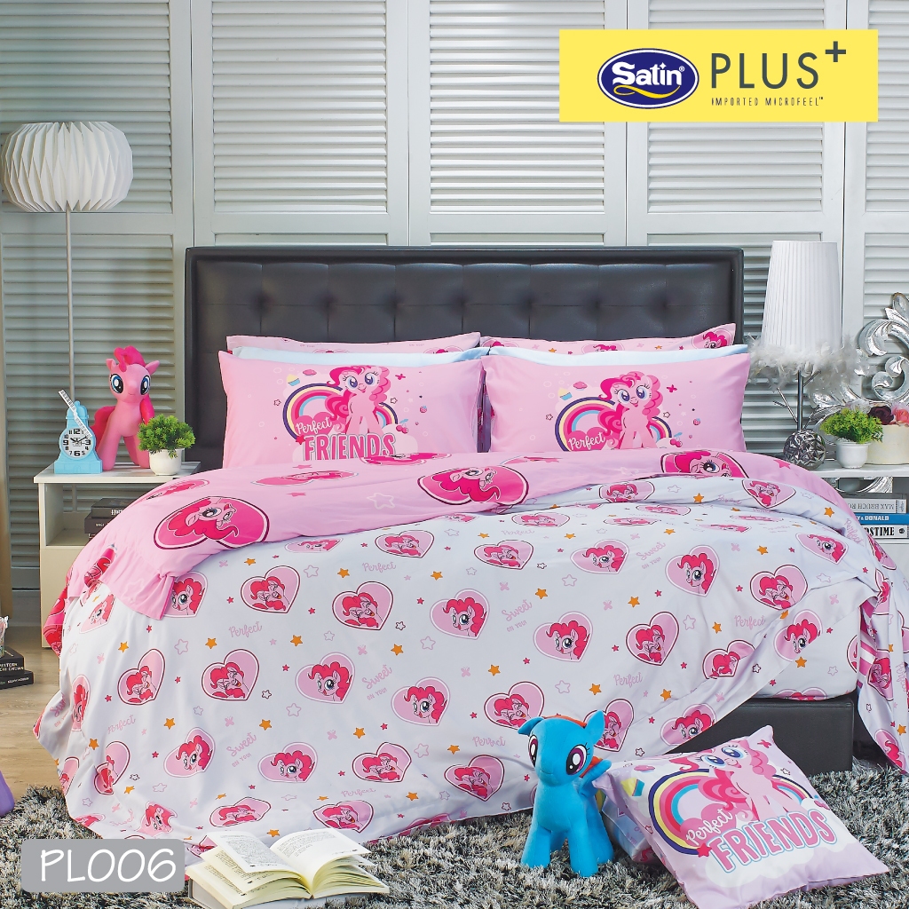 Satin Plus ชุดผ้าปูที่นอน 6 ฟุต 5 ฟุต 5 ชิ้น+ผ้านวมขนาด100"x90" ลายการ์ตูนลิขสิทธิ์