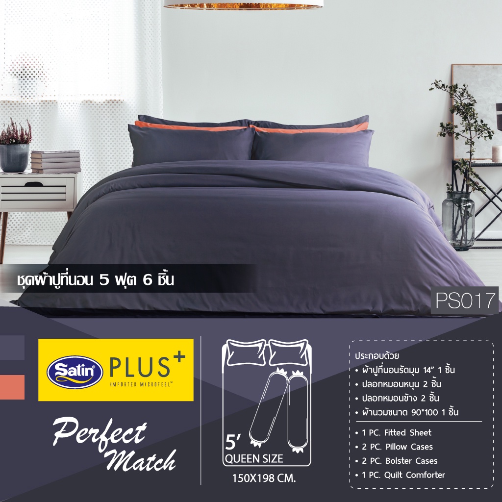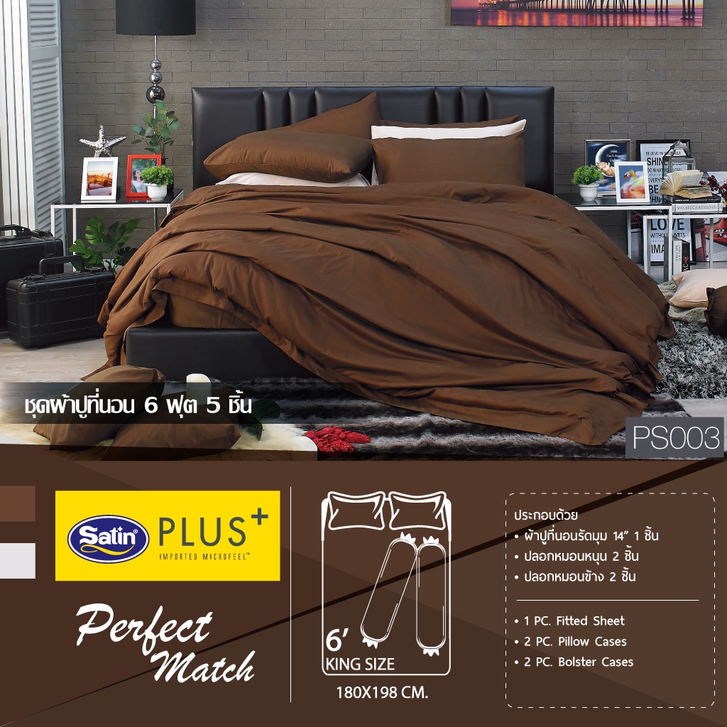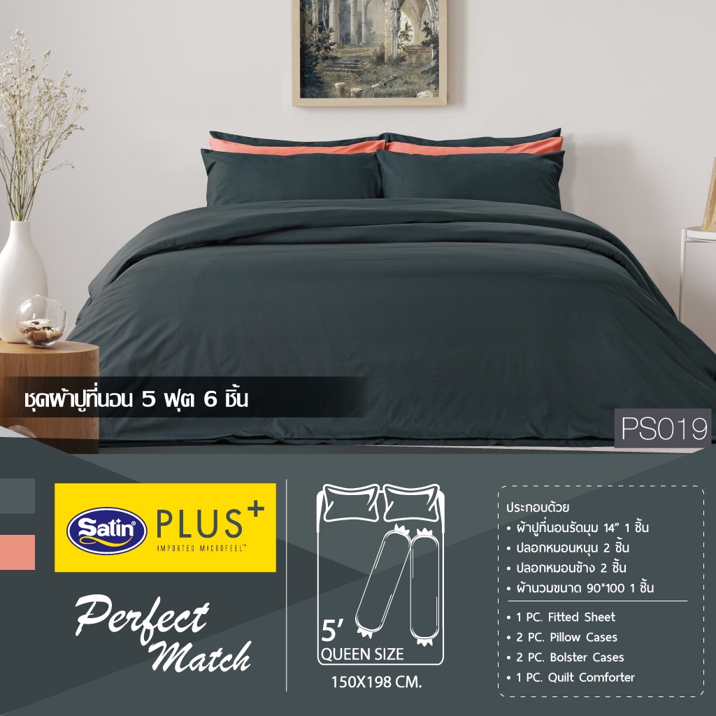 Satin Plus Solid ชุดผ้าปูที่นอน 6 ฟุต 5 ฟุต มี 5 ชิ้น ผ้านุ่มมาก(ไม่รวมนวม) PS2