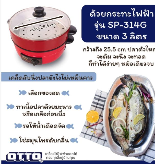 [ลูกค้าใหม่1บาท]ใช้โค้ดWW2GYSลด25%กระทะไฟฟ้าOtto SP314Gกะทะไฟฟ้า2ชั้น สามารถ ทอด ต้ม นึ่ง อุ่น มีซึ้ง