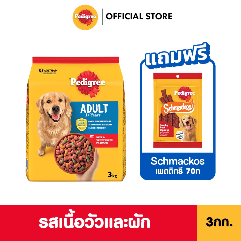 PEDIGREE เพดดิกรี อาหารเม็ดสุนัข สุนัขโต รสเนื้อวัวและผัก / ไก่และผัก / ตับและผัก / แกะและผัก / ไก่และตับย่าง 3กก.