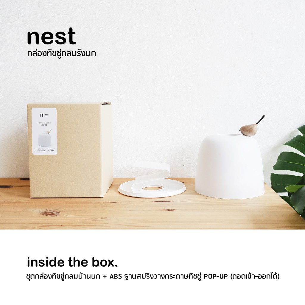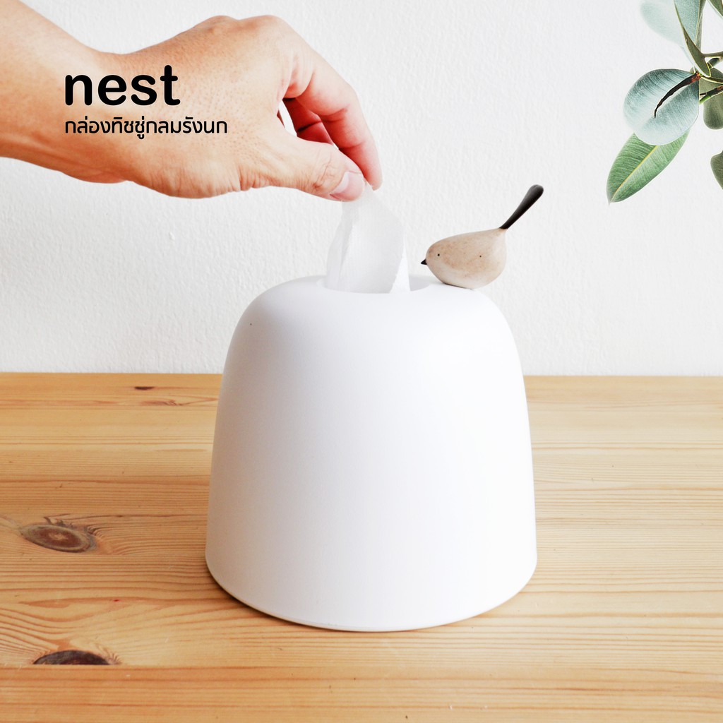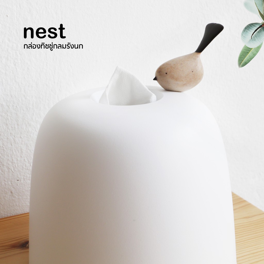 minimal sculpt 🏠 กล่องทิชชู่กลม สีขาว ทรงรังนก มีนกไม้เกาะ มินิมอล กล่องใส่ทิชชู่ กล่องทิชชู่ม้วน tissue holder
