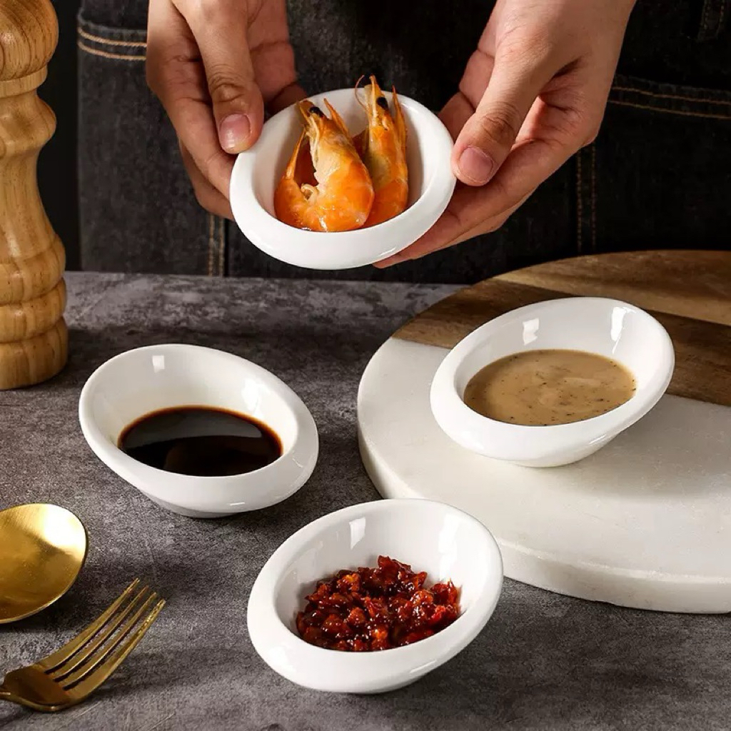 ถ้วยน้ำจิ้มเซรามิค สีขาวดำ สไตล์มินิมอลฟิวชั่น เข้าไมโครเวฟได้