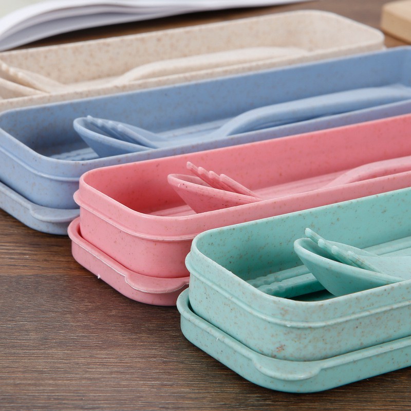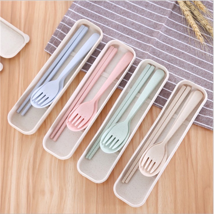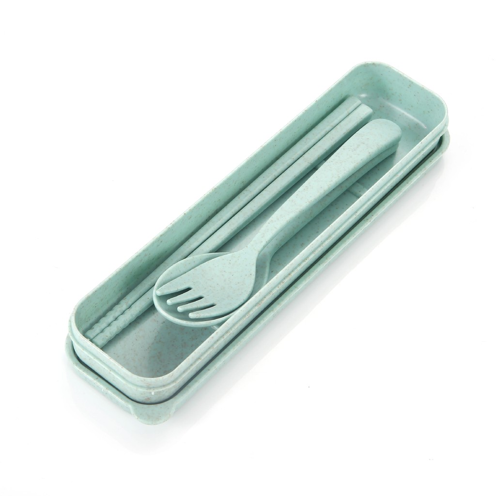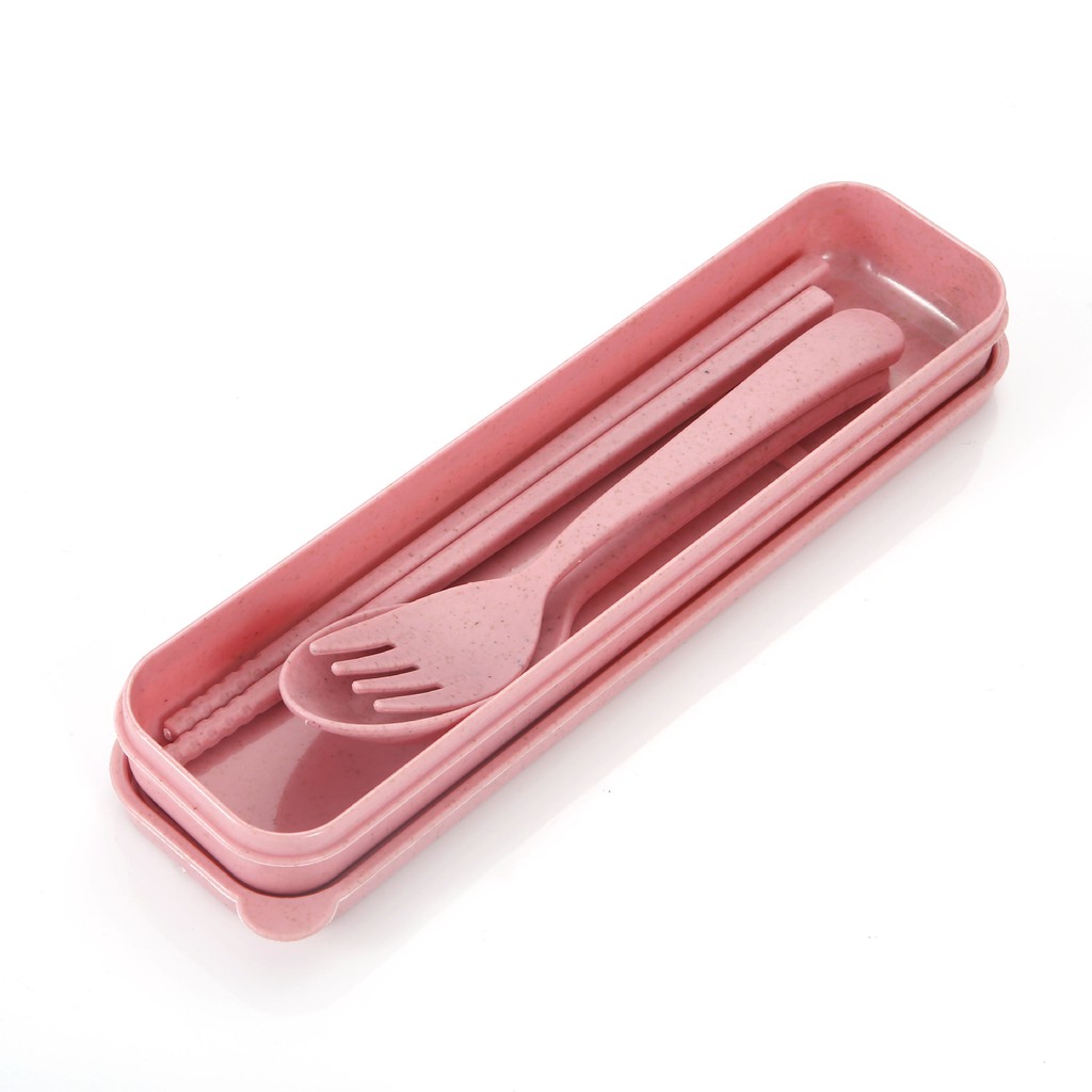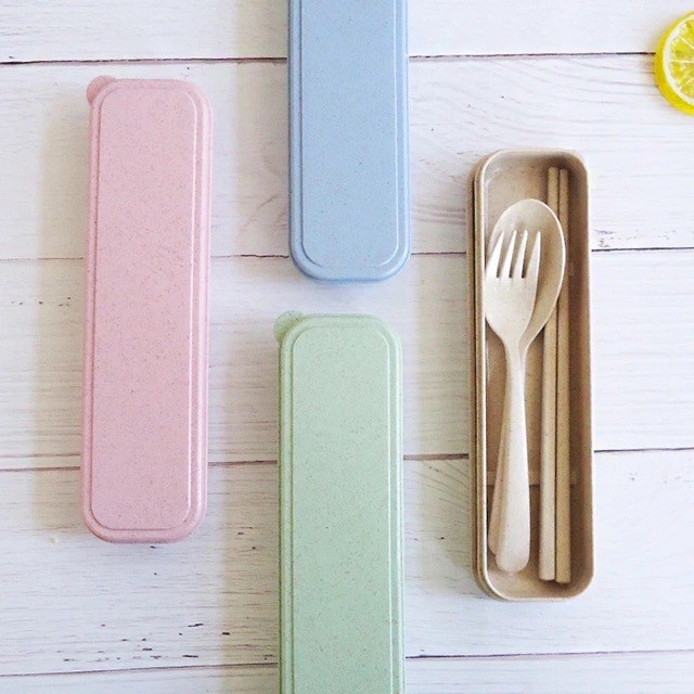 ช้อนส้อม+ตะเกียบ พร้อมกล่อง ใส่ขนาดพกพา แบบพกพา มี 4 สีให้เลือก