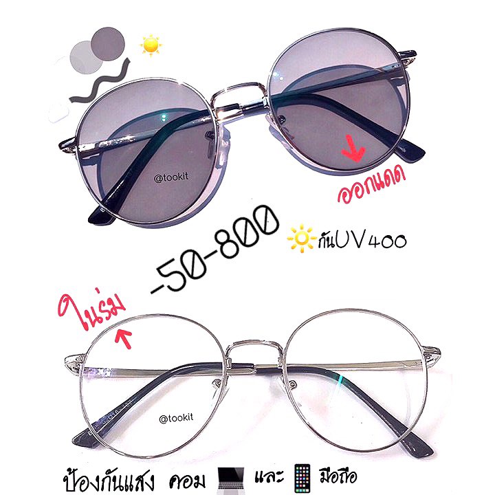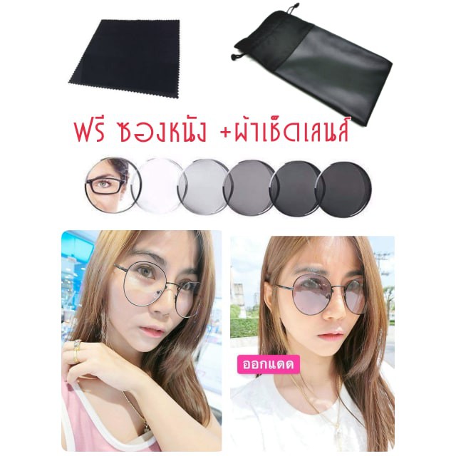แว่นสายตาสั้น(-50ถึง-800)กรองแสงUV+ออโต้เลนส์ ออกแดดเปลี่ยนสีออโต้ ทรงหยดน้ำ(กรอบพร้อมเลนส ์สายตา)แถมซองหนัง+ผ้าเช็ดเลนส์