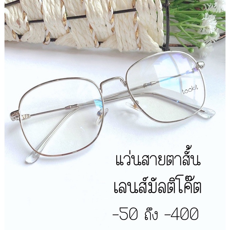 แว่นสายตาสั้น กรองแสงคอมและมือถือ เลนส์มัลติโค๊ต(-50 ถึง -400 )ทรงสี่เหลี่ยม(กรอบพร้อมเลนส์สายตาสั้น) แถมซองหนัง+ผ้าเช็ด