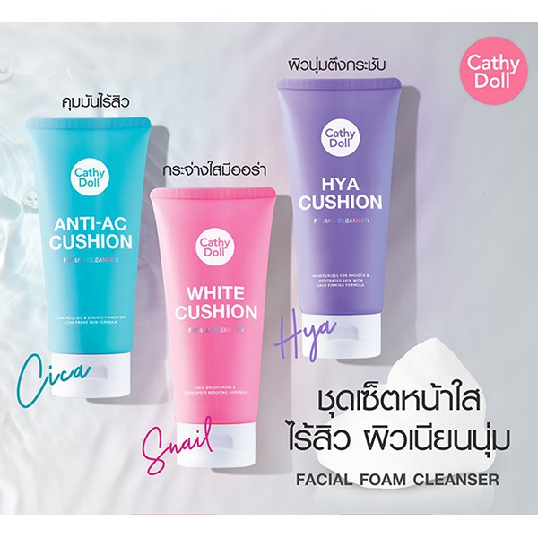 Cathy Doll คูชั่นเฟเชียลโฟมคลีนเซอร์ 120ml คูชั่นคลีนเซอร์สูตรผิวไร้สิว คุมมัน,สูตรออร่ากระจ่างใส,สูตรผิวนุ่มตึงกระชับ