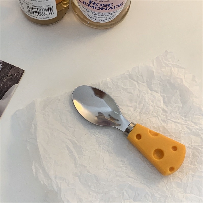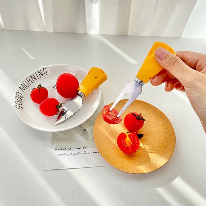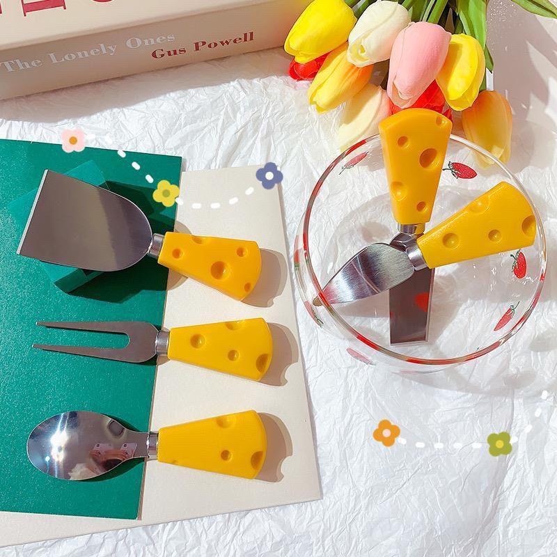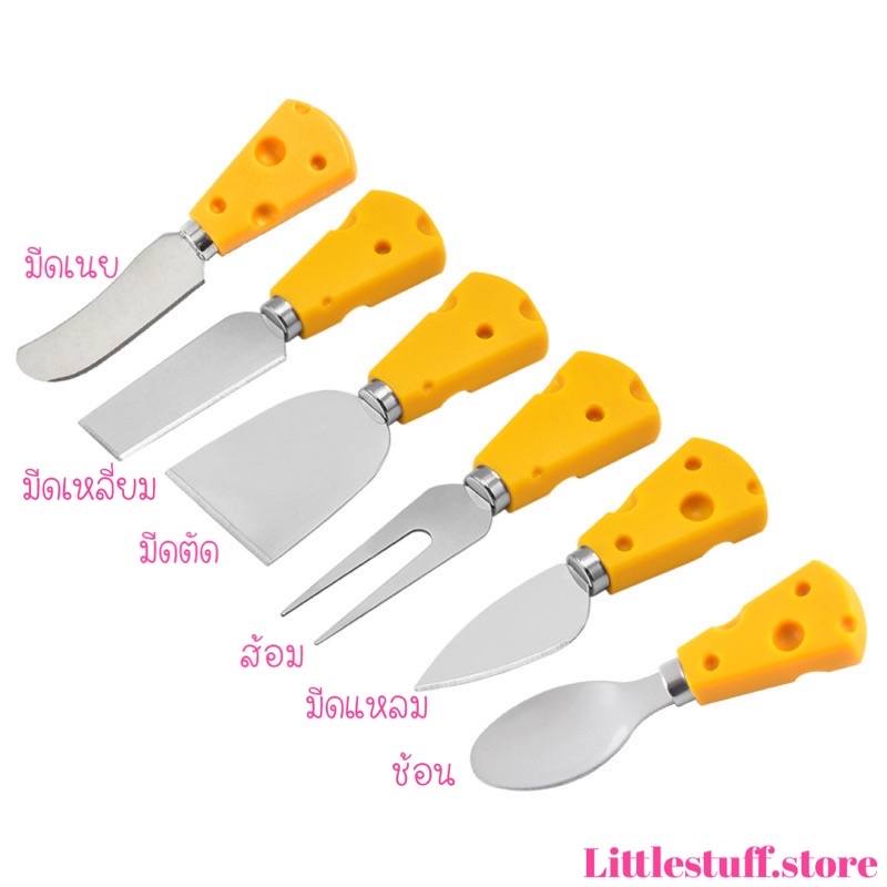 🟠🚚🇹🇭 สินค้าพร้อมส่ง (ร้านไทย) 🇹🇭🟠🧀 ช้อน ส้อม มีด รูปทรงชีส ช้อนชีส ส้อมชีส ช้อนขนม สแตนเลสด้ามเป็นพลาสติก PP