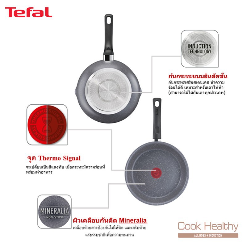 🔥พร้อมส่ง🔥 TEFAL กระทะก้นลึก ขอบ 2 หยัก ก้นอินดักชั่น Cook Healthy