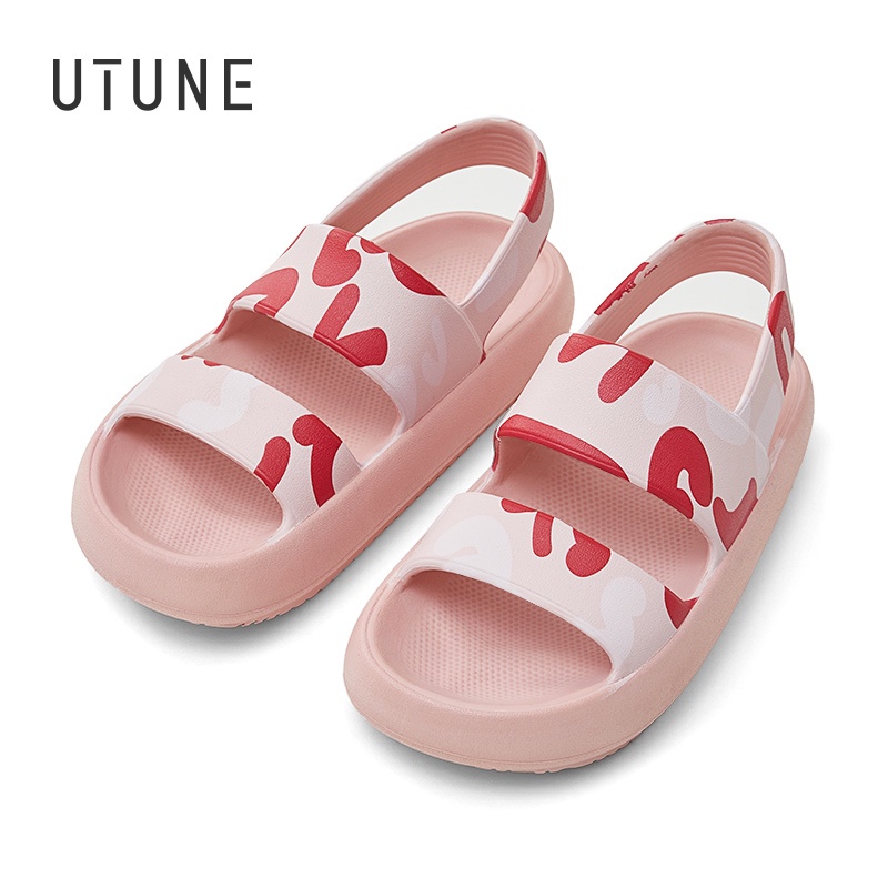 UTUNE รองเท้าแตะผู้หญิง ส้นหนา มีสายรัดส้น ดีไซน์ลายแฟชั่น นุ่มสบาย เหมาะสำหรับใส่ชายหาดและทะเล