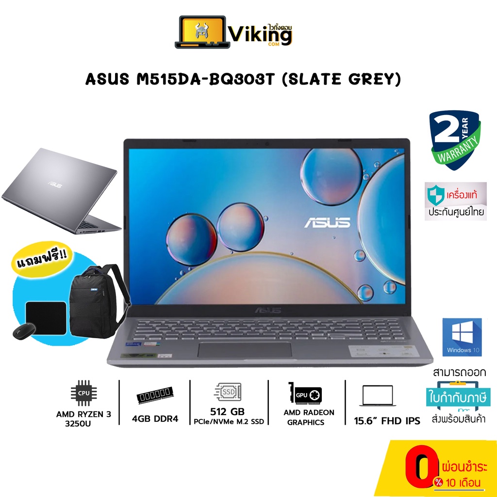 NOTEBOOK (โน้ตบุ๊ค) ASUS M515DA-BQ303T /Ryzen 3 /4GB /512GB/ Winแท้