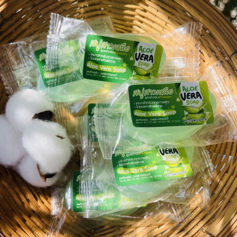 สบู่ว่านหางอโรเวล่าผลิตจากสารสกัดอโรเวล่าแท้ ซื้อครบ 100 ก้อน แถม 5 ก้อน #ของแถม#ของชำร่วยแร็ปและซีนถุงซีนให้ทุกก้อน