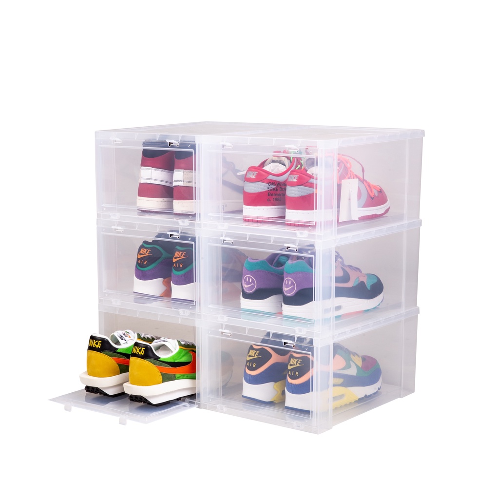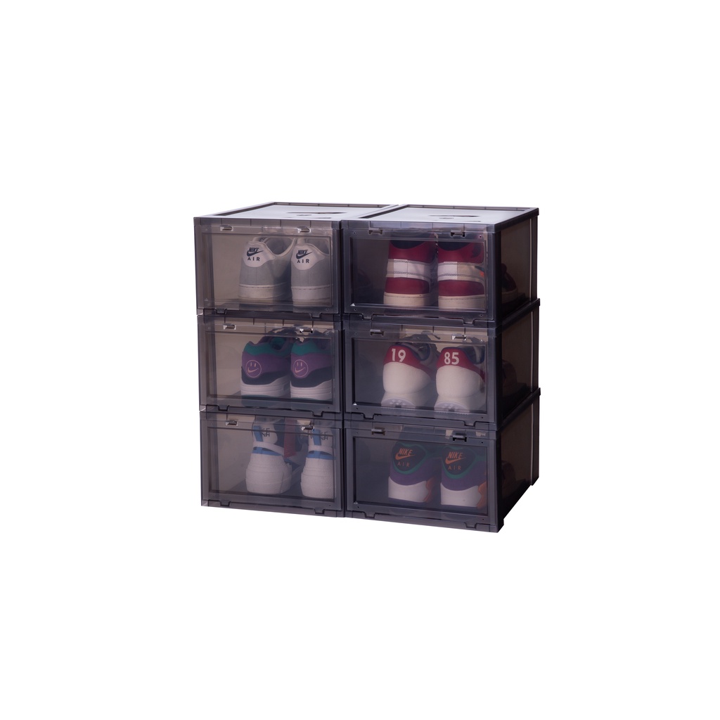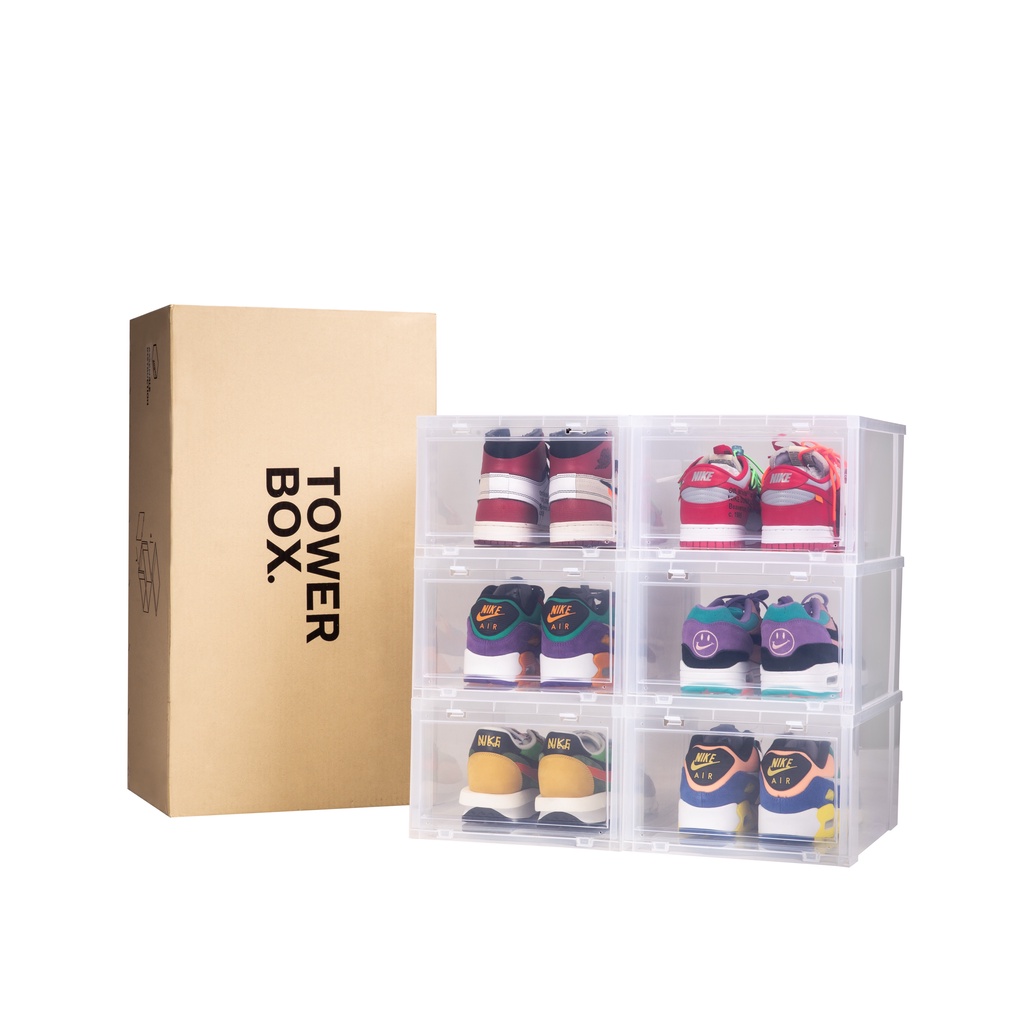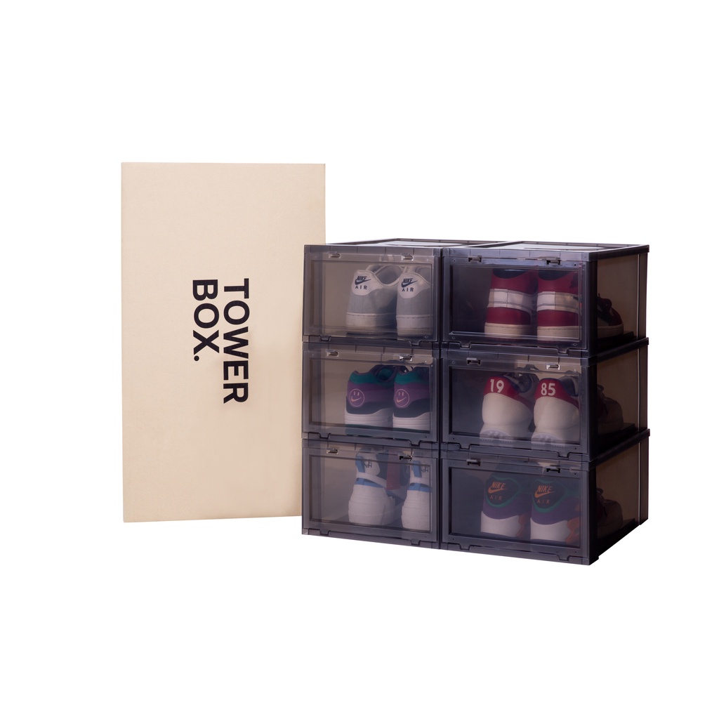 [Code 15DD300] ชั้นเก็บรองเท้า Tower Box แบบใส ดำ Pack 6 แพค กล่องรองเท้า กล่องเก็บรองเท้า