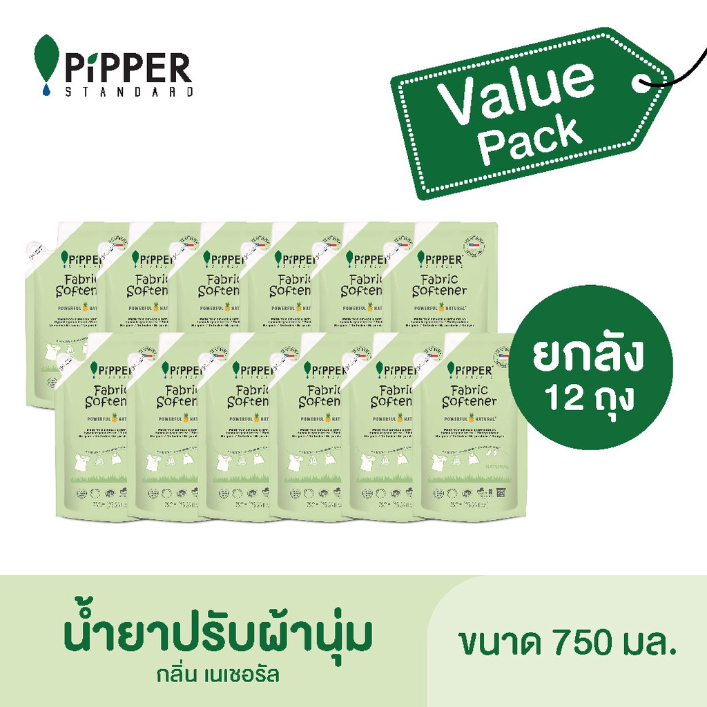 Pipper Standard Value Pack ผลิตภัณฑ์ปรับผ้านุ่ม กลิ่นเนเชอรัล ขนาด 750 มล. ยกลัง 12 ถุง ราคาปกติลังละ 2,220 บาท