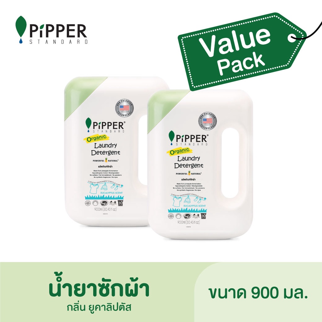 Pipper Standard Value Pack ผลิตภัณฑ์ซักผ้า กลิ่น Eucalyptus ขนาด 900 มล. จำนวน 2 ขวด.ราคาปกติขวดละ 260 บาท