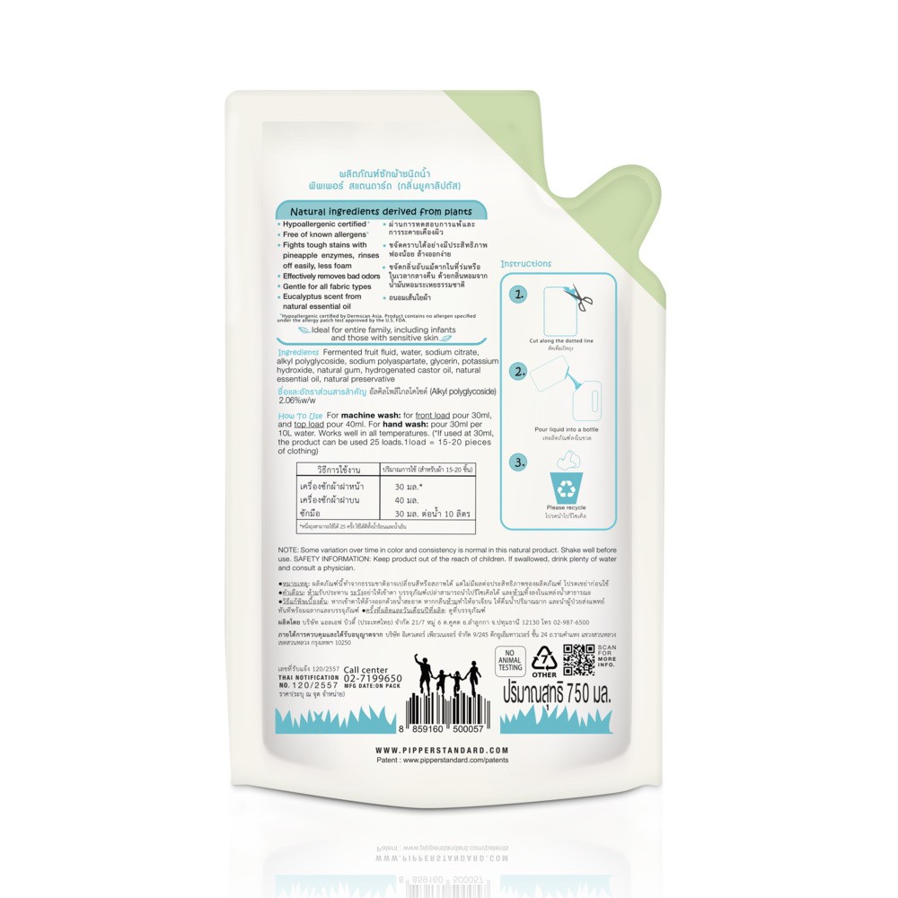 Pipper Standard ผลิตภัณฑ์ซักผ้า กลิ่น Eucalyptus ขนาด 750 มล. (6 ถุง)