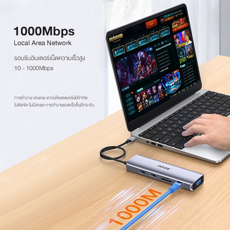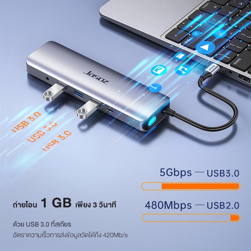⚡ส่งจาก กทม⚡Jasoz อะแดปเตอร์ฮับ Type C HUB 8in1 Adabter แท้ Hub USB3.0*3+HDMI+PD100W+SD+TF+RJ45