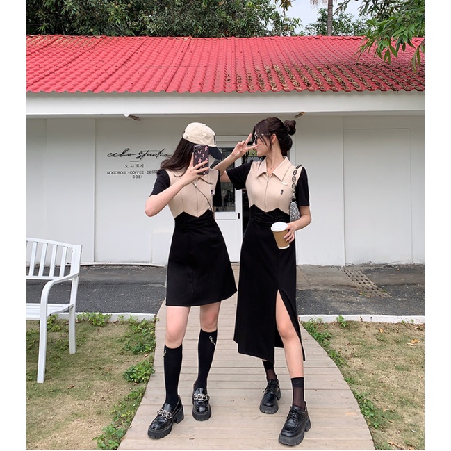 Onlygirl พร้อมส่ง💖เดรส dress เดรสเกาหลี เดรสผ่าข้าง กระโปรงยาว/กระโปรงสั้น ผ้าพรีเมี่ยมสวมใส่สบาย ชุดเดรส