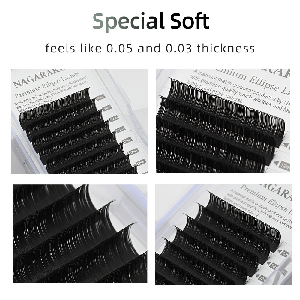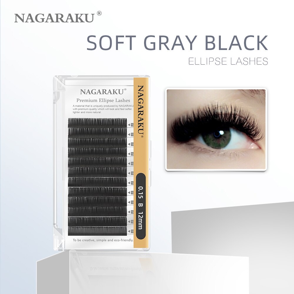 NAGARAKU Matte สีสีเทาขนตาปลอม Ellipse Eyelash Extensions Premium Mink Flat Lashes แยกเคล็ดลับ Ellipse Eyelashes
