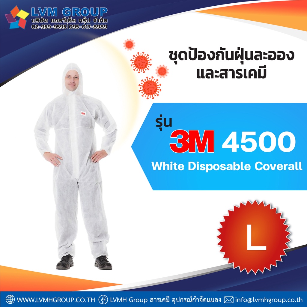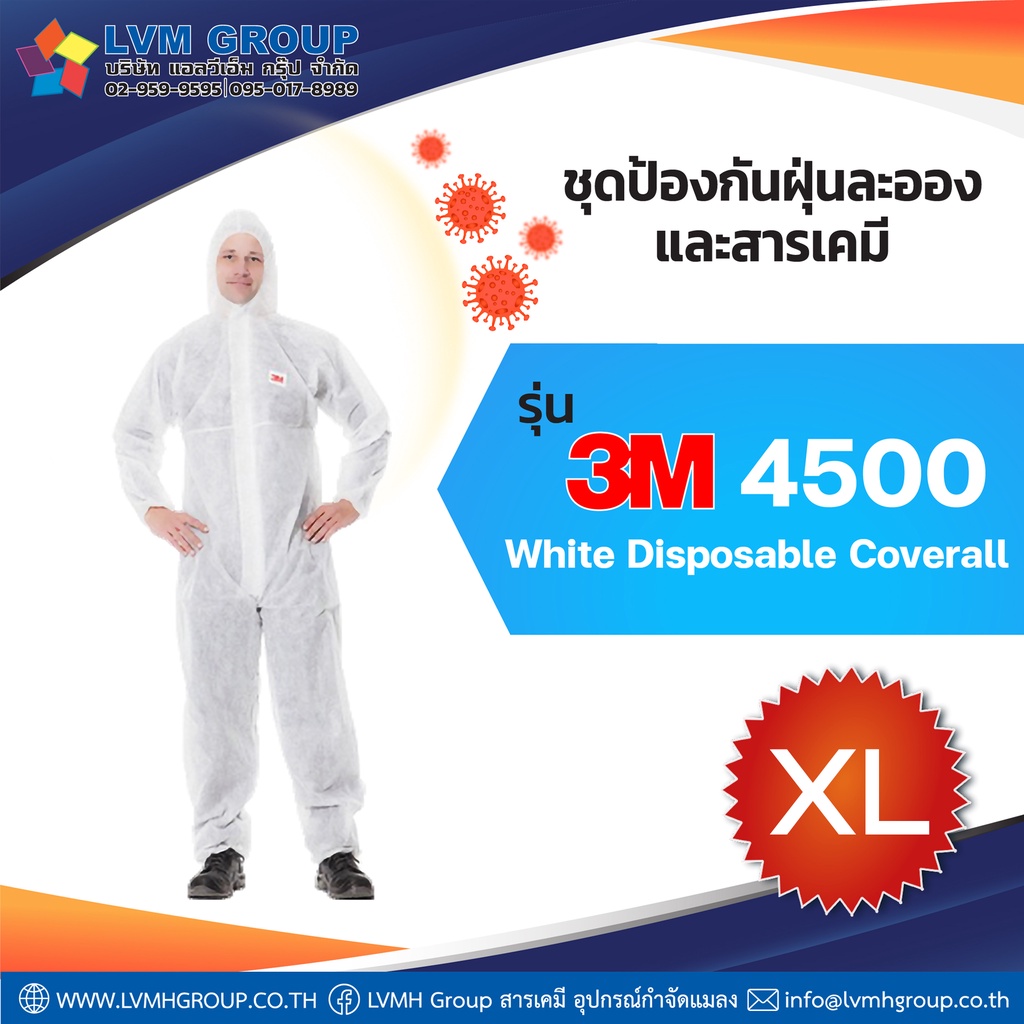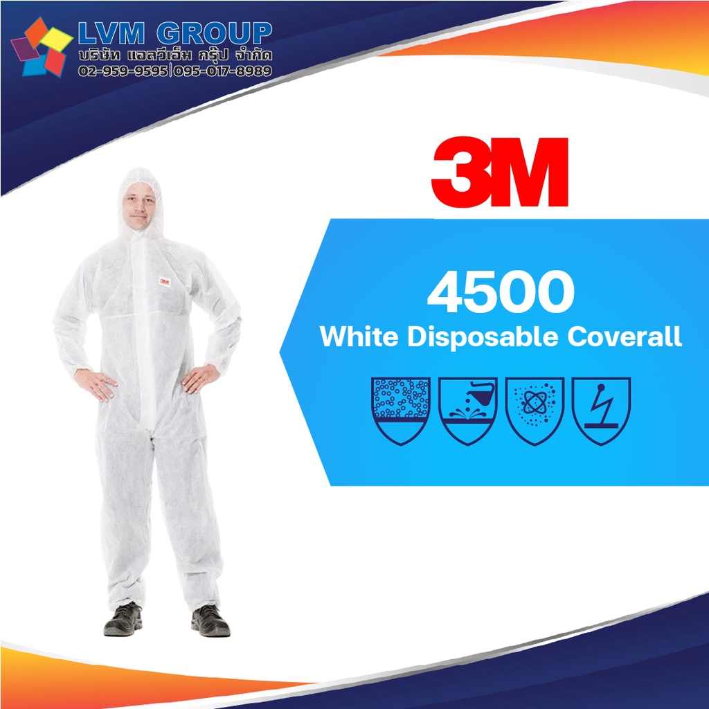พร้อมส่ง!! ชุด PPE ชุดป้องกันสารเคมี ชุดป้องกันเชื้อโรค 3M™4500 Size M L XL ของแท้