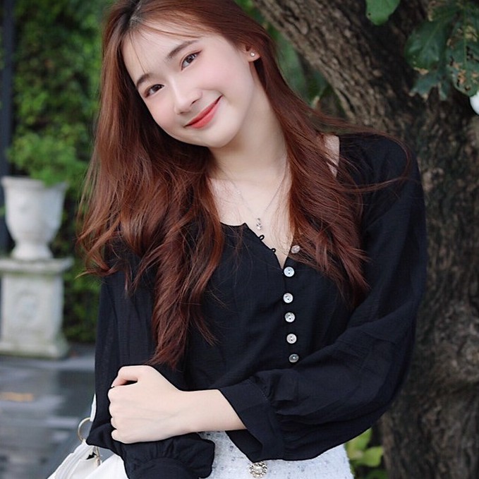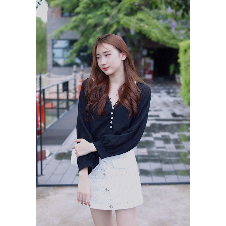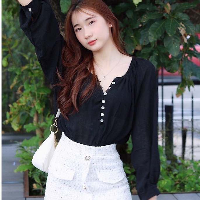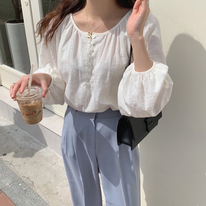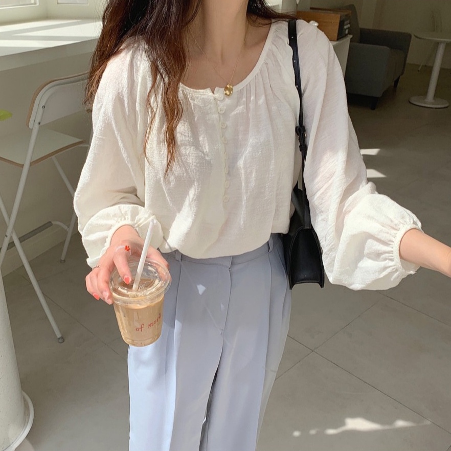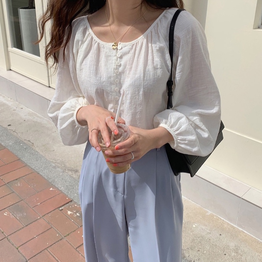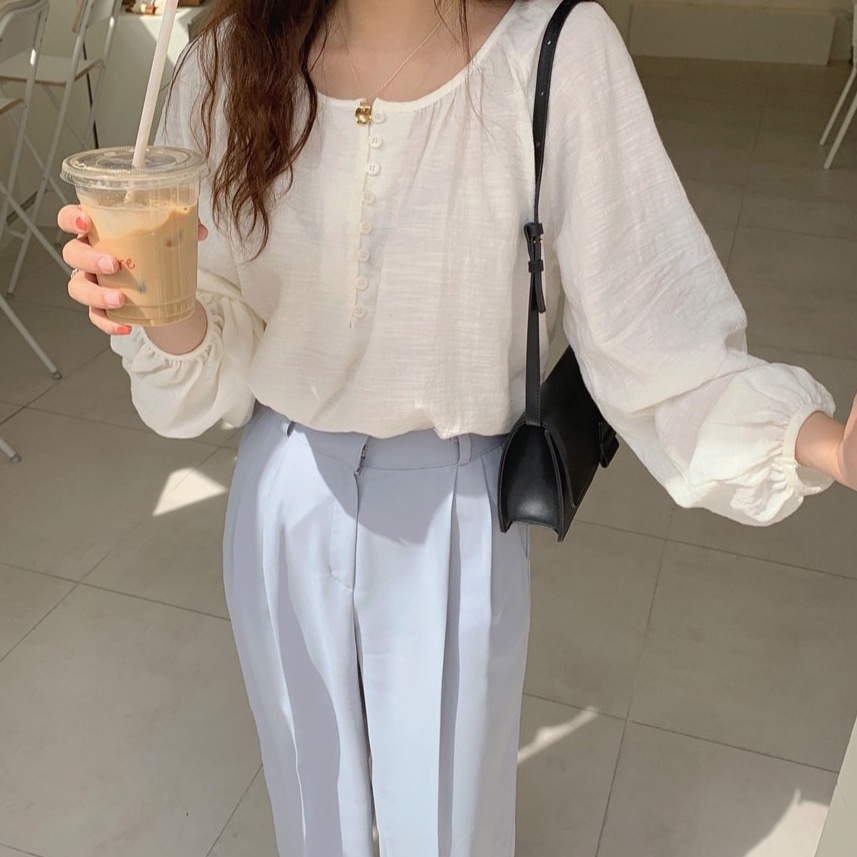 KSTYLE4U เสื้อสีพื้นแขนยาวแต่งดีเทลกระดุมหน้า #2166 เสื้อสีพื้น เสื้อใส่ทำงาน เสื้อแต่งกระดุม