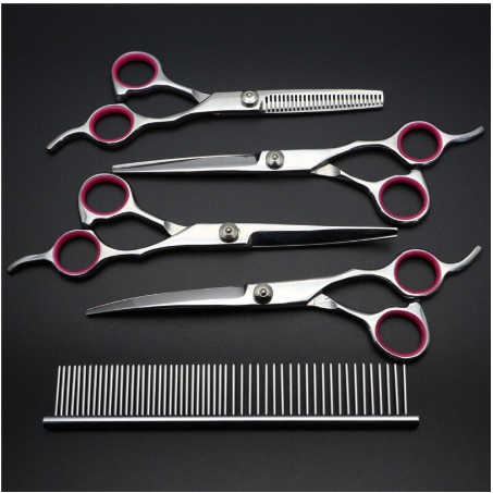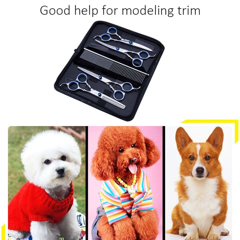 6pcs กรรไกรตัดขนสัตว์เลี้ยงสุนัขแมว พร้อมหวีสแตนเลสและกระเป๋าสำหรับเก็บ
