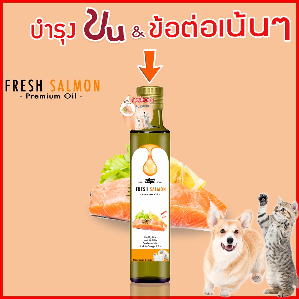 น้ำมันปลาแซลมอน น้ำมันเมล็ดแฟล็กซีด สกัดเย็น เพื่อสุนัขและแมว บำรุงขน ผิวหนัง ลดขนร่วงบำรุงข้อต่อ