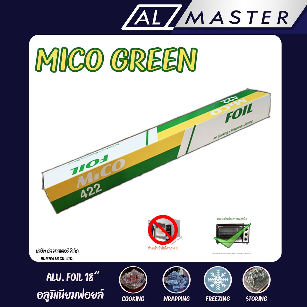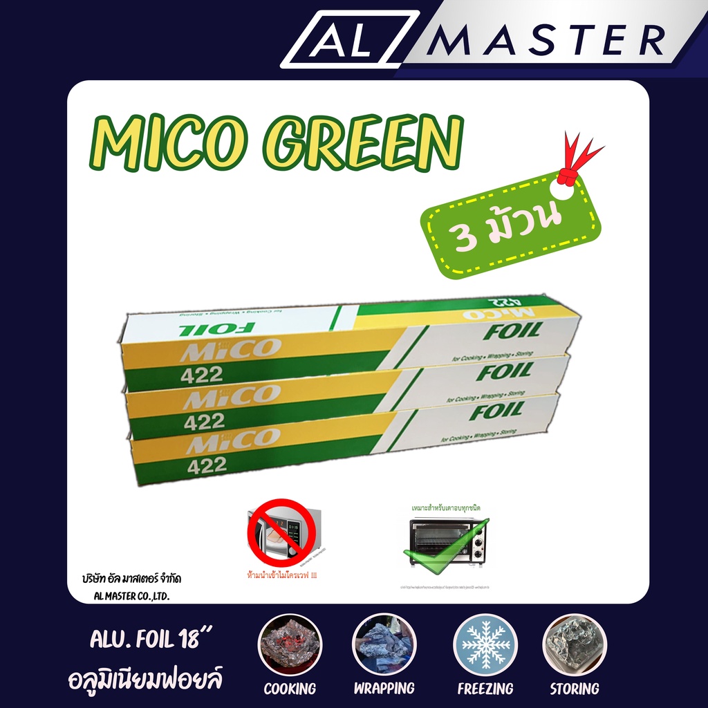 🚩 ซื้อแพ็ค 3 ม้วน 2 ชุด แถมฟรี 2 ม้วน🚩 MICO GREEN อลูมิเนียมฟอยล์ กว้าง 45ซ.ม. ยาว 7.62 เมตร