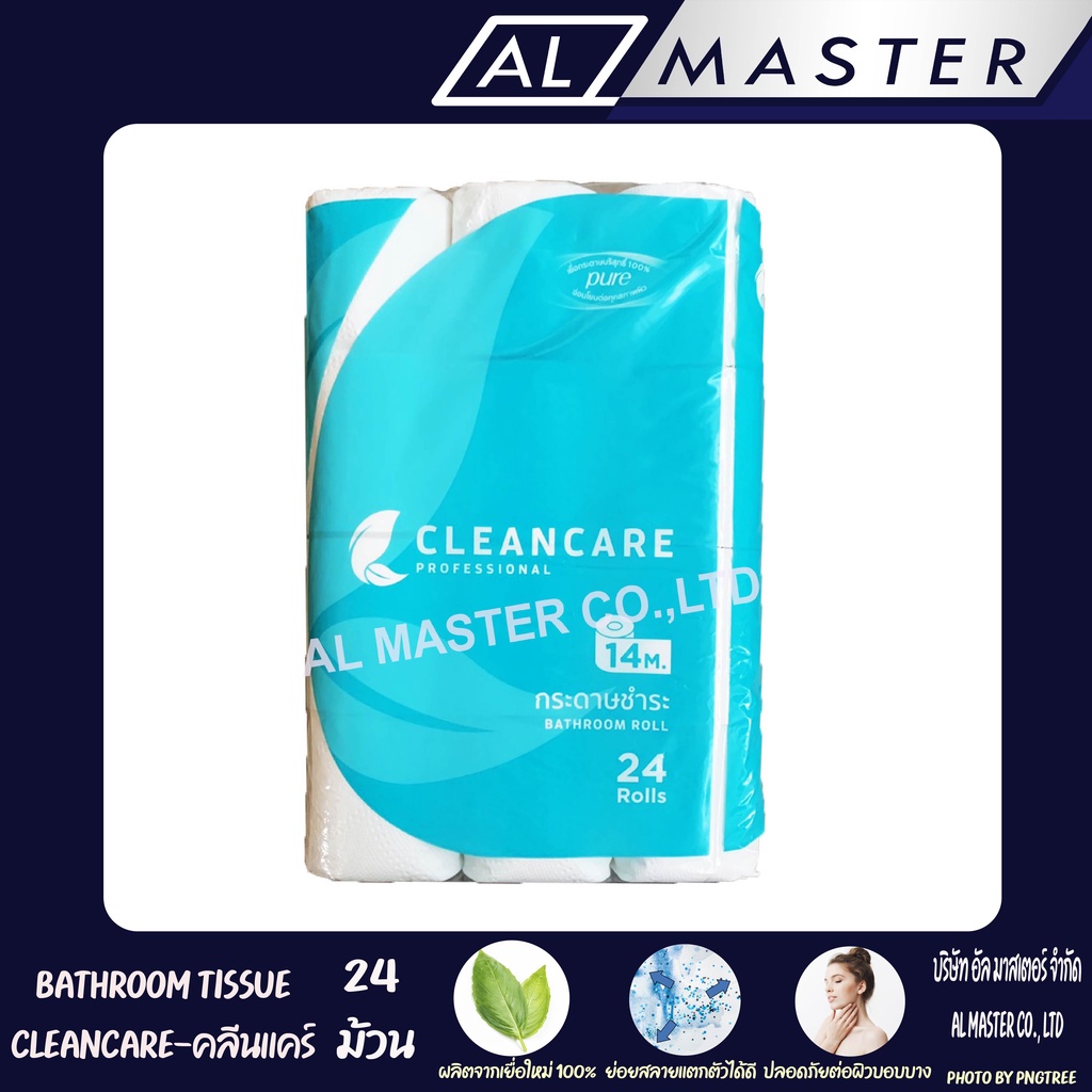 คลีนแคร์-Cleancare กระดาษชำระม้วนเล็ก เยื่อบริสุทธิ์ 100% ขนาด 24 ม้วน