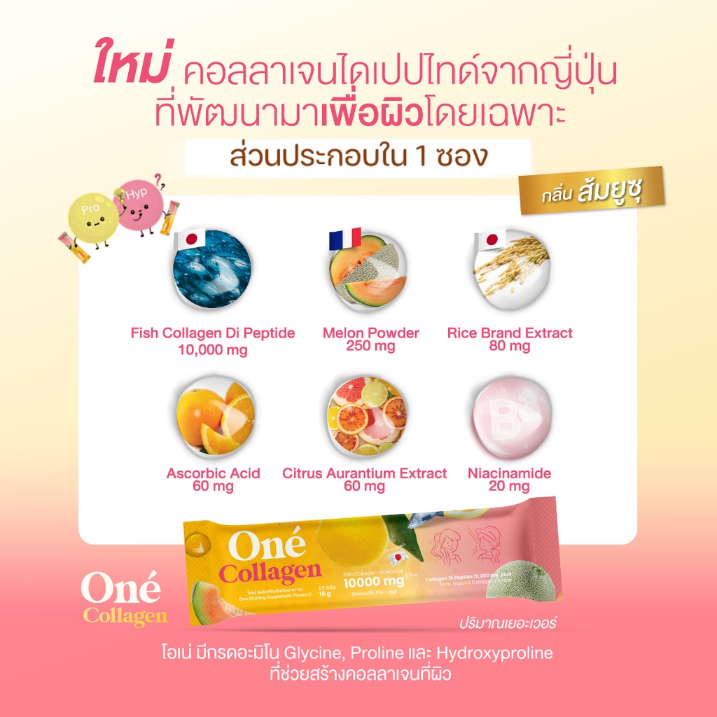 โอเน่ คอลลาเจน (One’ Collagen) คอลลาเจนไดเปปไทด์ 10,000 มิลลิกรัม 2 กล่อง 20 ซอง