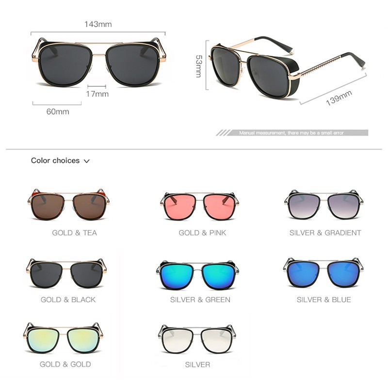 แว่นตาสไตล์ TONY STARK แว่นกันเเดดวินเทจ