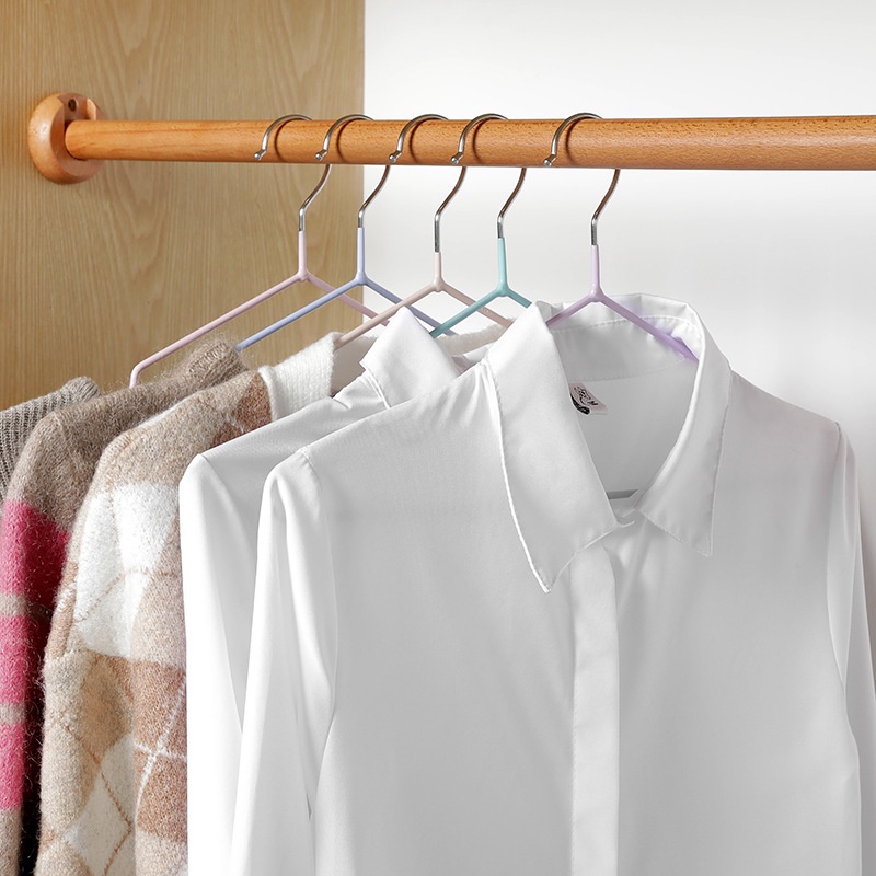Double.thai ไม้แขวนเสื้อสแตนเลส หุ้มซิลิโคนกันลื่น ไม้แขวนเสื้อผู้ใหญ่40cm (แพ็ค6ชิ้น)