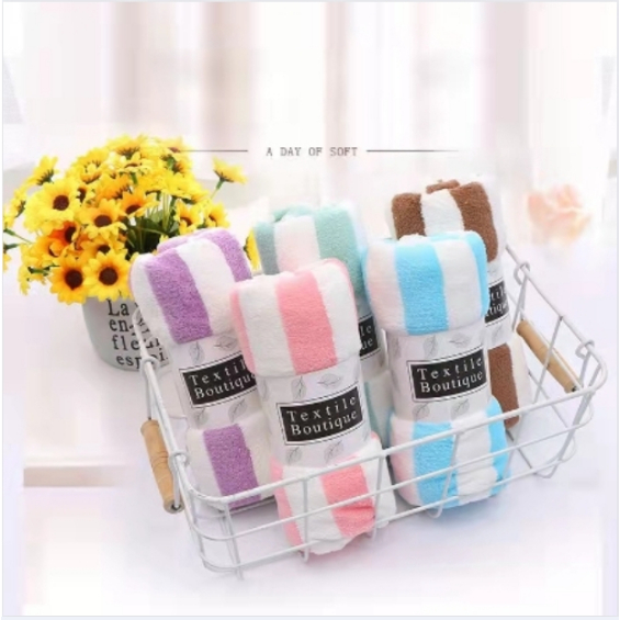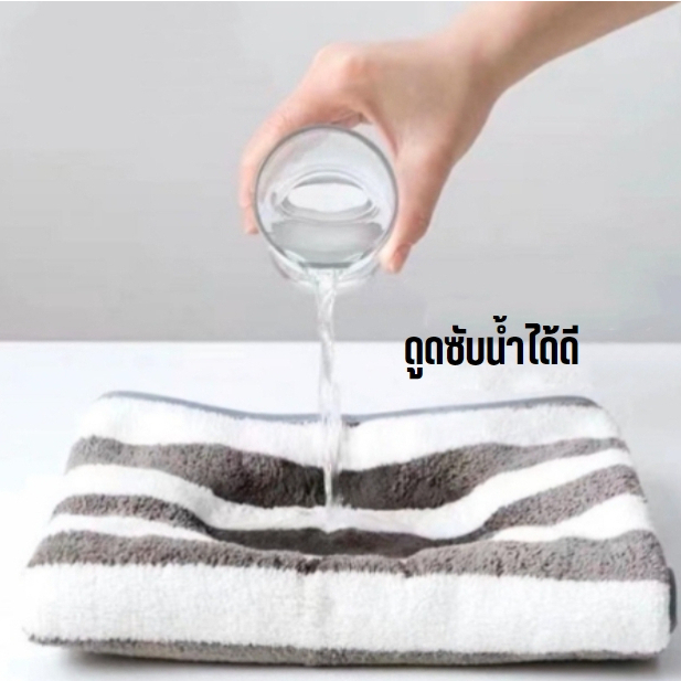 Double.thai ผ้าขนหนู ลายริ้ว ผ้าขนเป็ด ผ้าเช็ดหน้า (สุ่มสี)