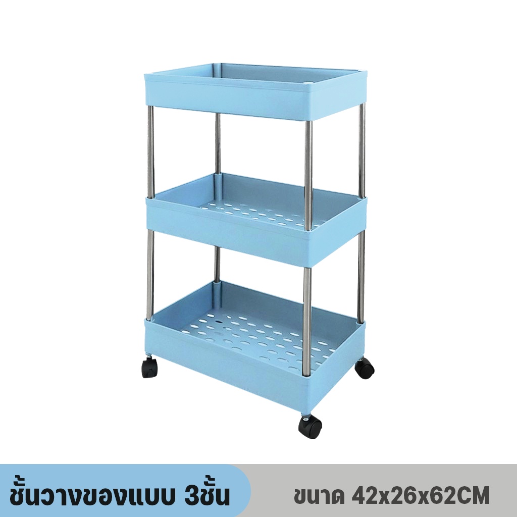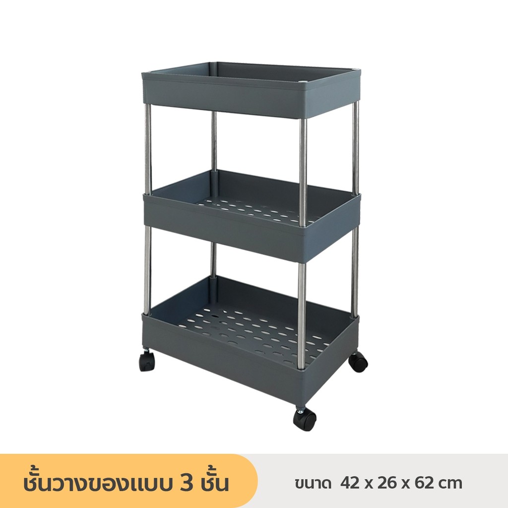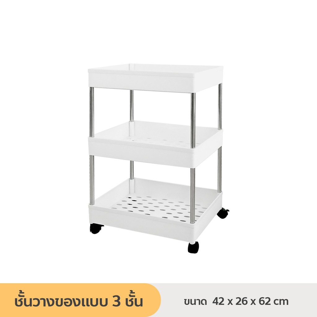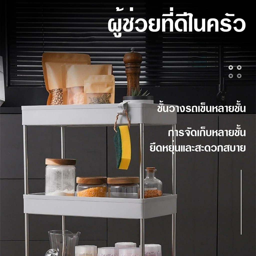 [ลูกค้าใหม่ 1฿] ชั้นวางของมีล้อเลื่อน ชั้นวางอเนกประสงค์ โครงสแตนเลส พร้อมตะขอ / HomeUP