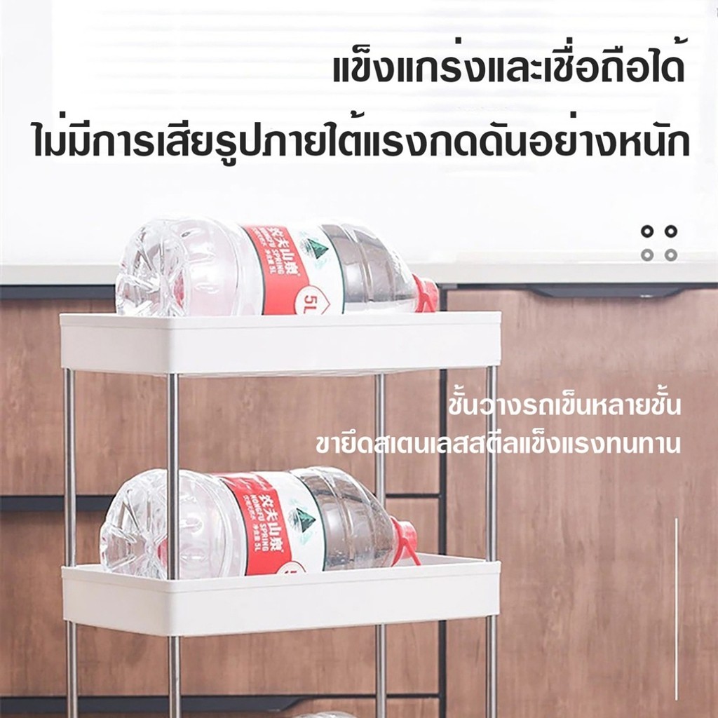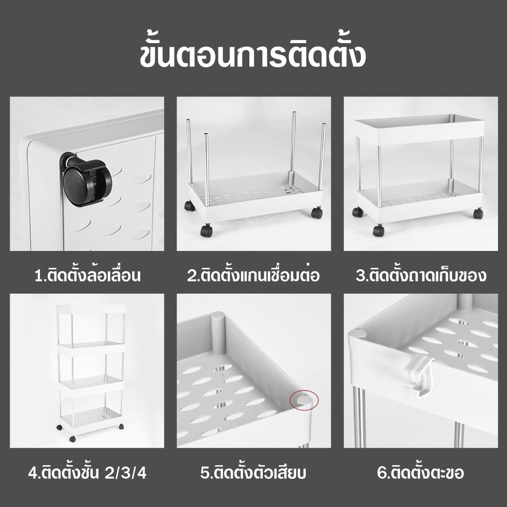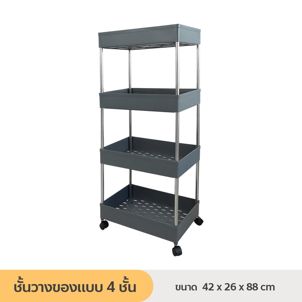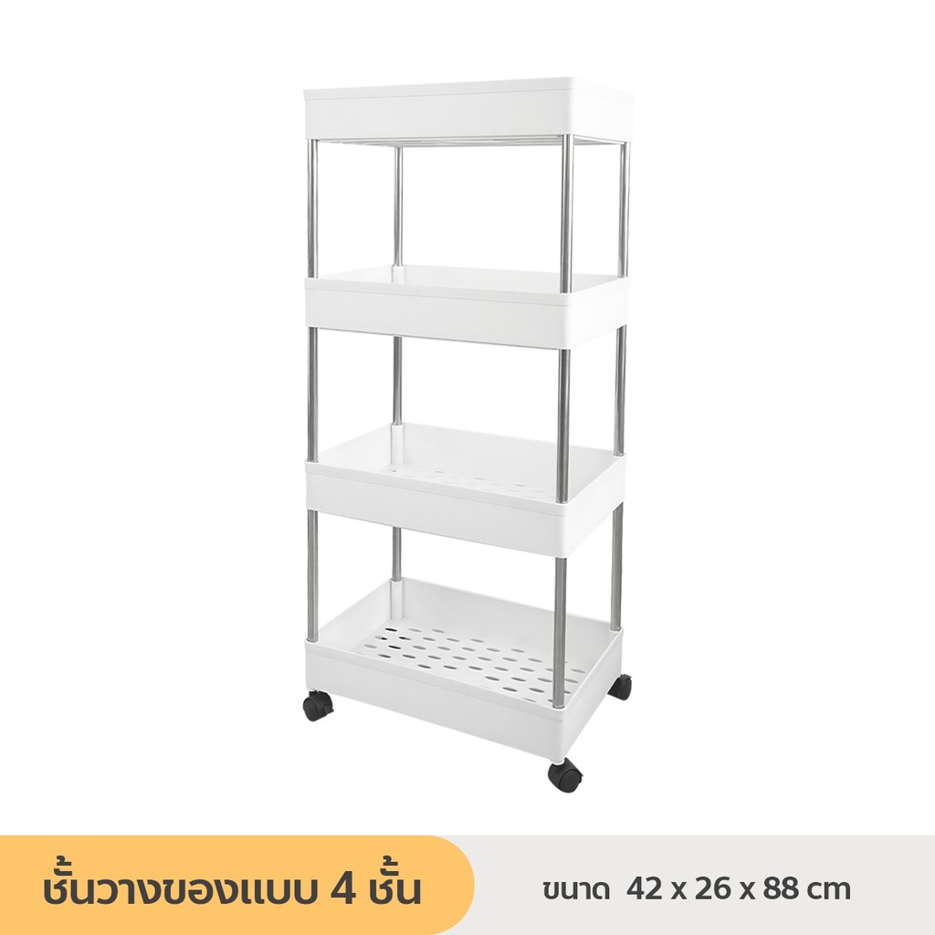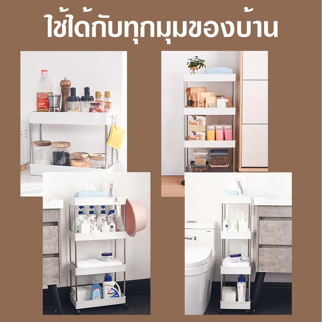 [ลูกค้าใหม่ 1฿] ชั้นวางของมีล้อเลื่อน ชั้นวางอเนกประสงค์ โครงสแตนเลส พร้อมตะขอ / HomeUP