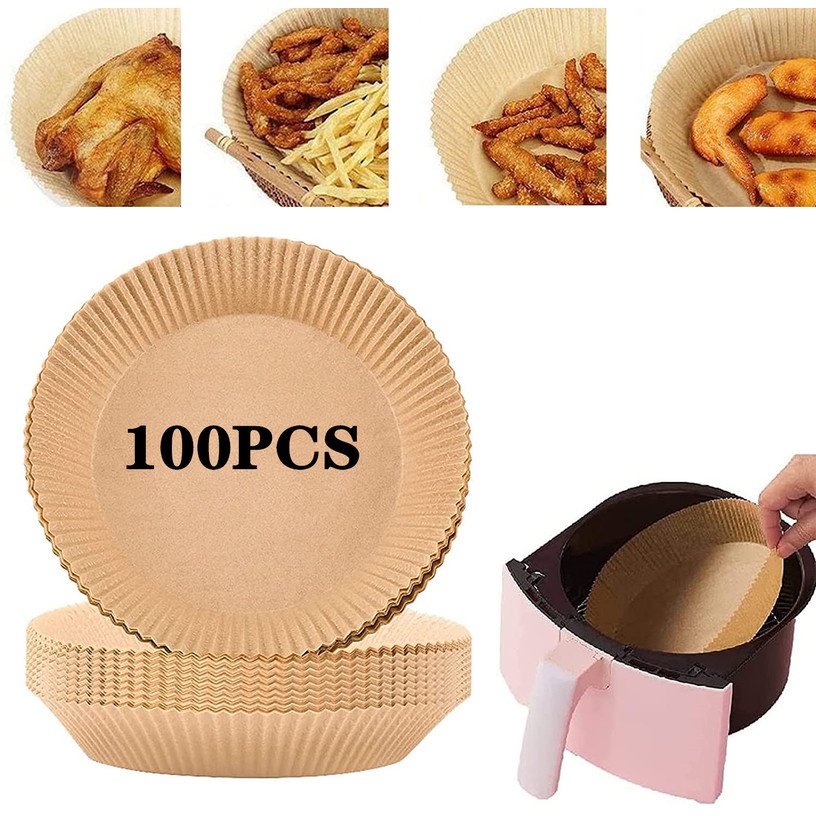 กระดาษรองหม้อทอดไร้น้ำมัน ทรงกลม แบบใช้แล้วทิ้ง 30/50/100 ชิ้น