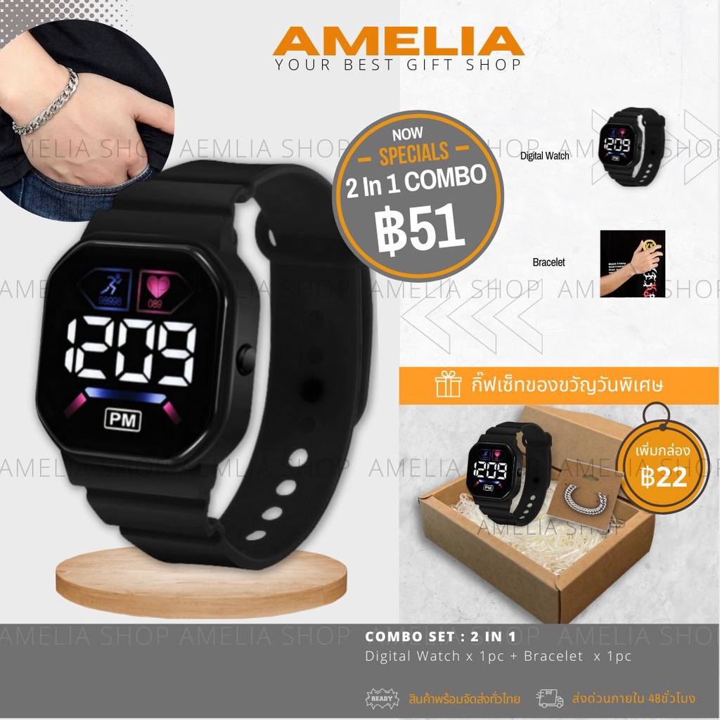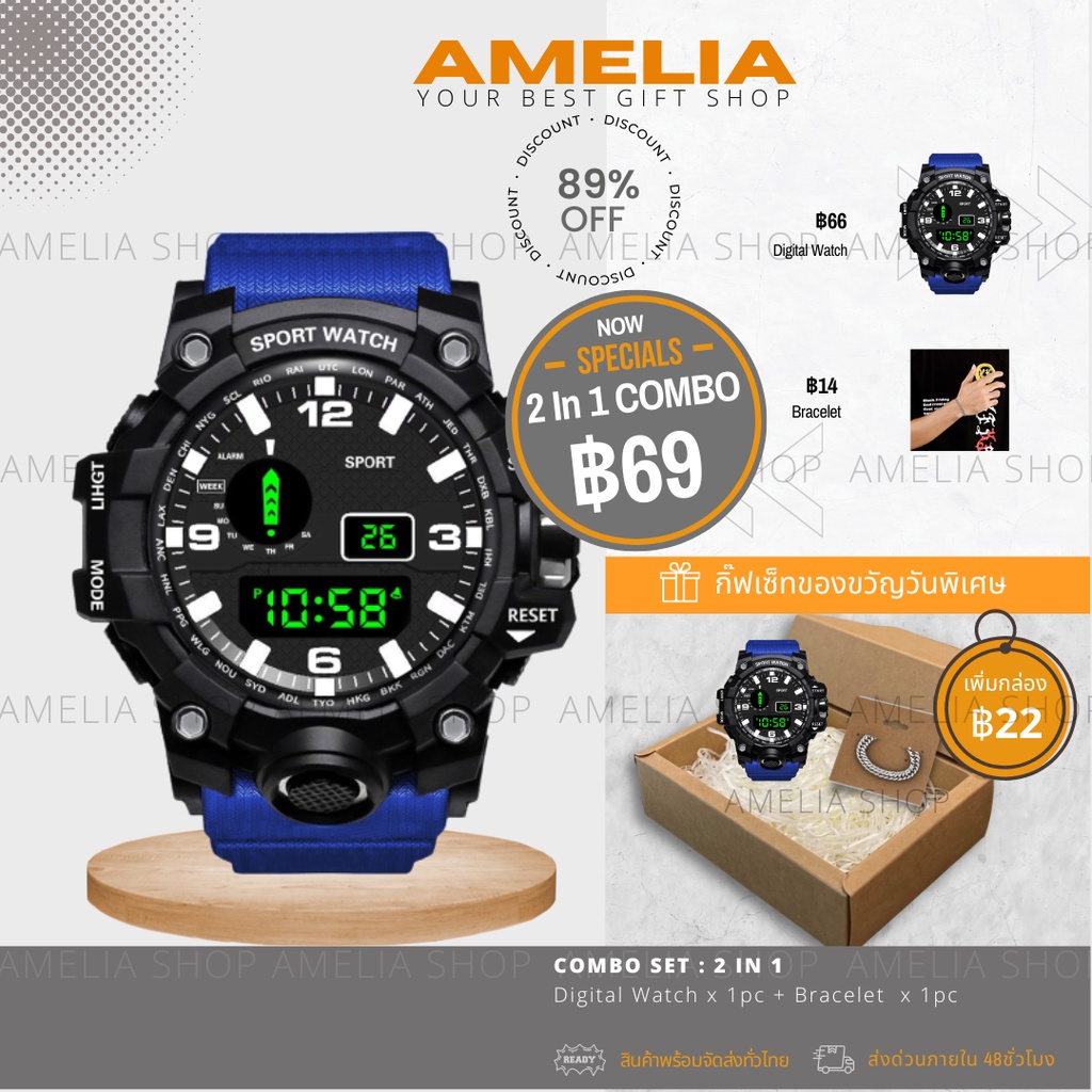 AMELIA AW245 นาฬิกาผู้ชาย นาฬิกา HONHX สปอร์ต ผู้ชาย นาฬิกาข้อมือผู้หญิง นาฬิกาข้อมือ นาฬิกาดิจิตอล Watch สายซิลิโคน แท้