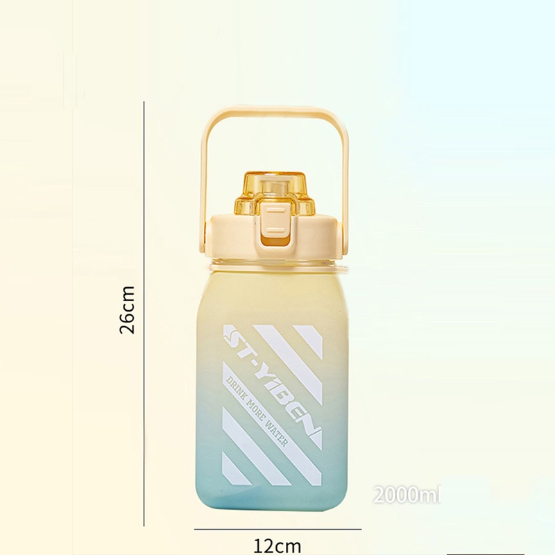 กระบอกน้ำ ขวดน้ำขนาดใหญ่ 2ลิตร พร้อมหลอด มีมาตรบอกระดับน้ำ ขวดน้ำพกพา ออกกำลังกาย กระบอกน้ำดื่ม *ถ่ายรูปจากสินค้าจริง