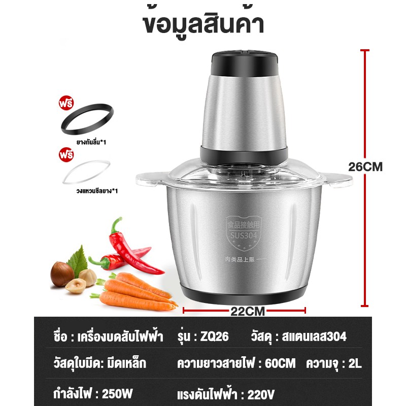 เครื่องปั่น เครื่องปั่นพริก 2L 750MLเครื่องบดหมู ปรับความเร็ว 3 ระดับ ตัวเครื่องแข็งแรงทนทาน เสียงรบกวนต่ำ