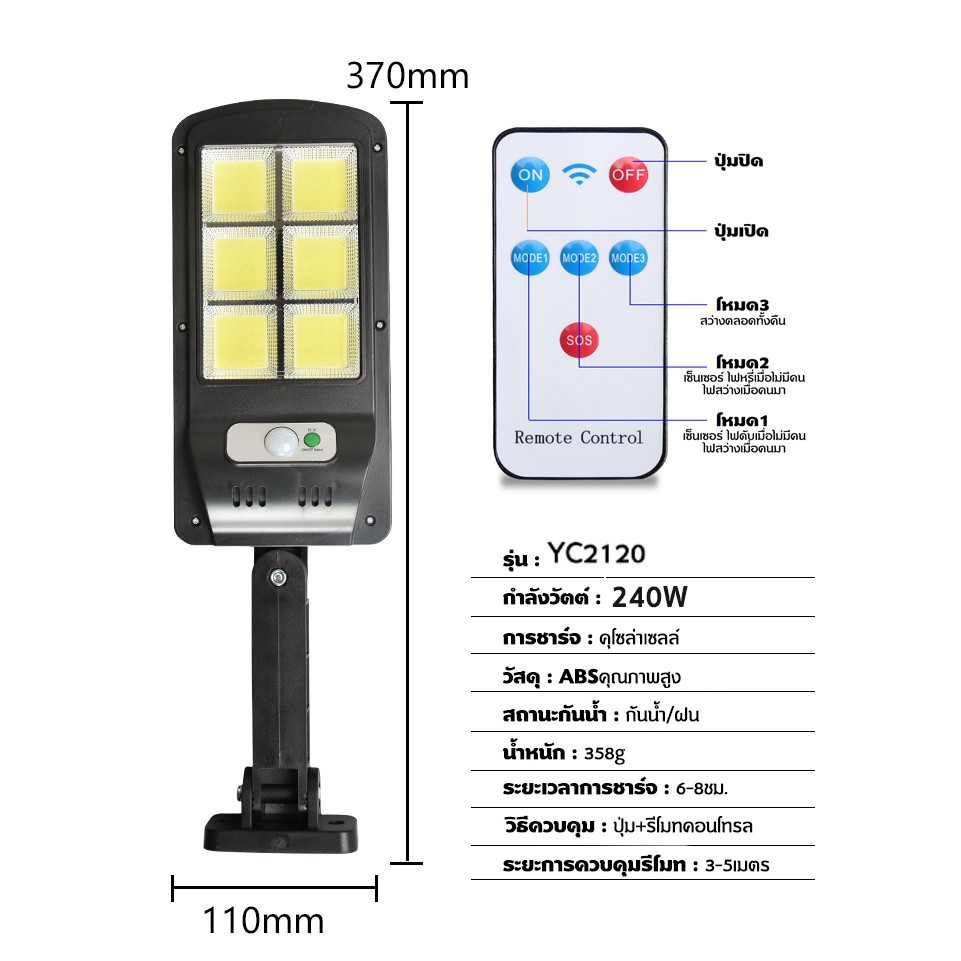 ใหญ่-ความยาว36cm// Solar lights 240w ไฟถนนโซล่าเซลล์ ไฟสปอตไลท์ ไฟLED ไฟโซล่าเซลล์ โคมไฟถนน โคมไฟโซล่าเซลล์ โคมไฟติดผนัง