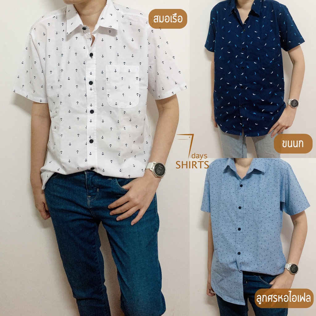 🔥ลดล้างสต็อก🔥 เสื้อเชิ้ตลาย พิมพ์ลาย เสื้อเชิ้ตชาย เสื้อเชิ้ตแขนสั้น เนื้อผ้าOxford