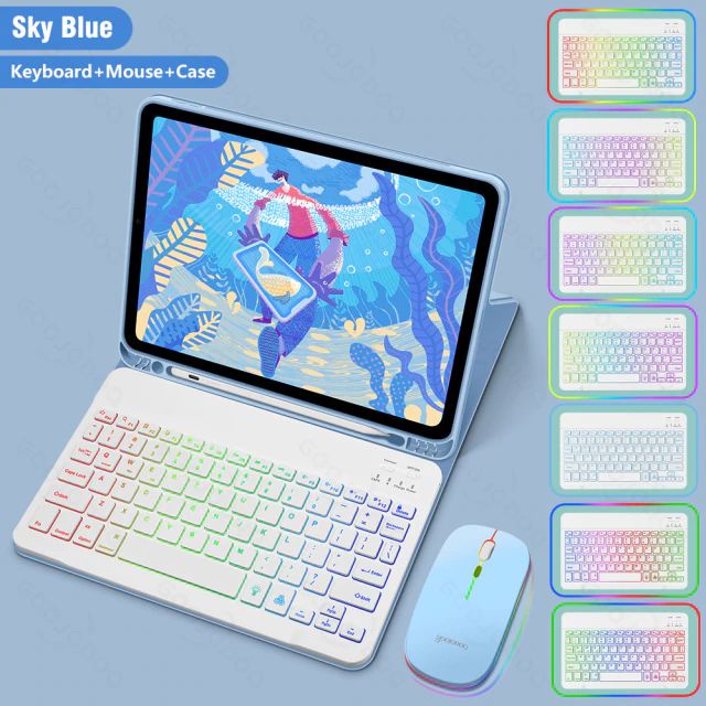 GOOJODOQ เคสแท็บเล็ต & ชุดคีย์บอร์ดและเมาส์ Bluetooth, เคสสำหรับ ipad Air 4, ipad 7/8/9 Gen 10.2, 2021 (สามชิ้น)
