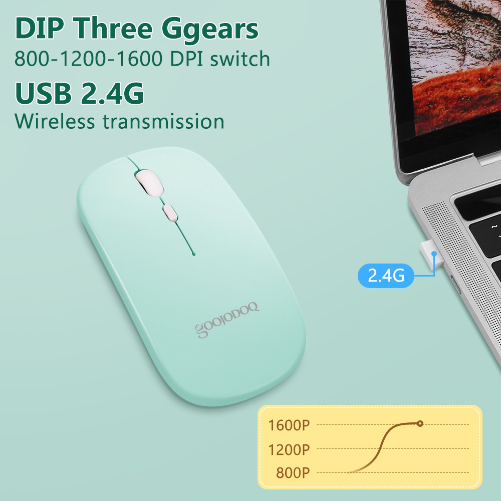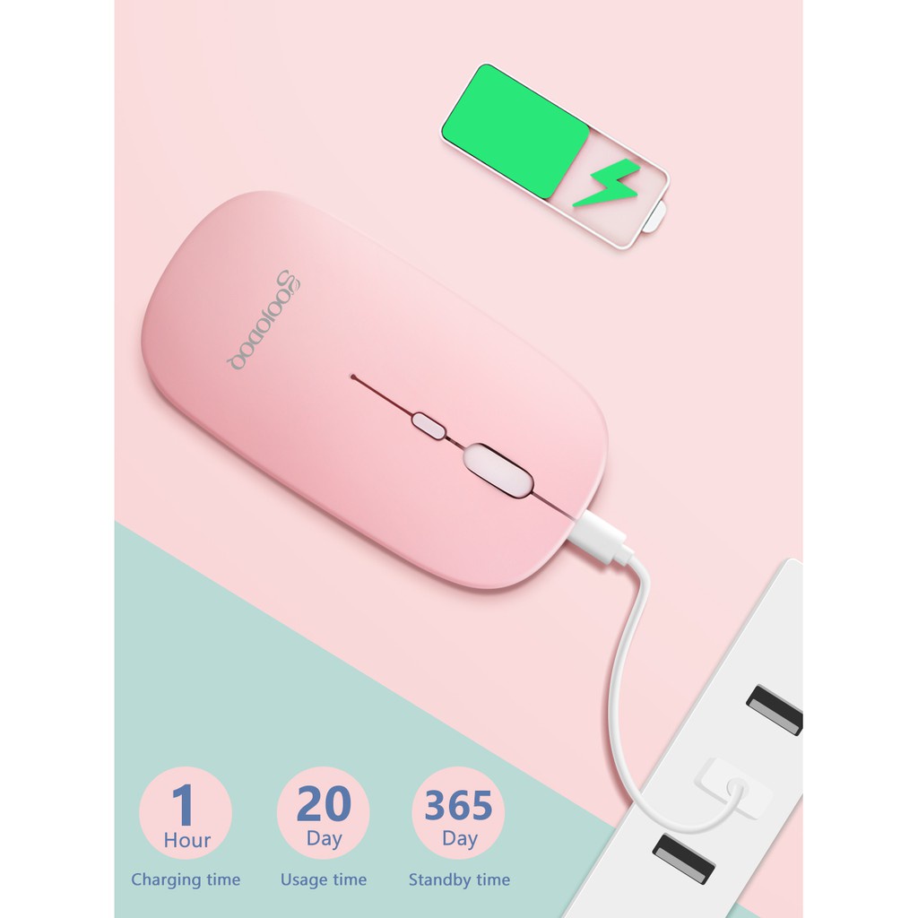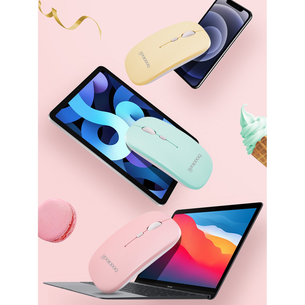 GOOJODOQ ไทยแลนด์สปอต เมาส์ เมาส์ไร้สาย 2.4G สีมาการอง พร้อมสายชาร์จ