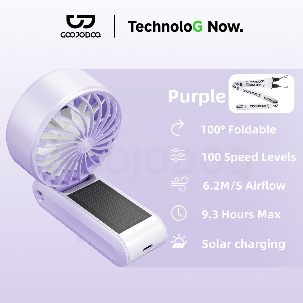 GOOJODOQ GFS003 มินิแฟน พัดลมมือถือ เงียบ การไหลของอากาศความเร็วสูง การปรับความเร็ว พัดลมคอพับ