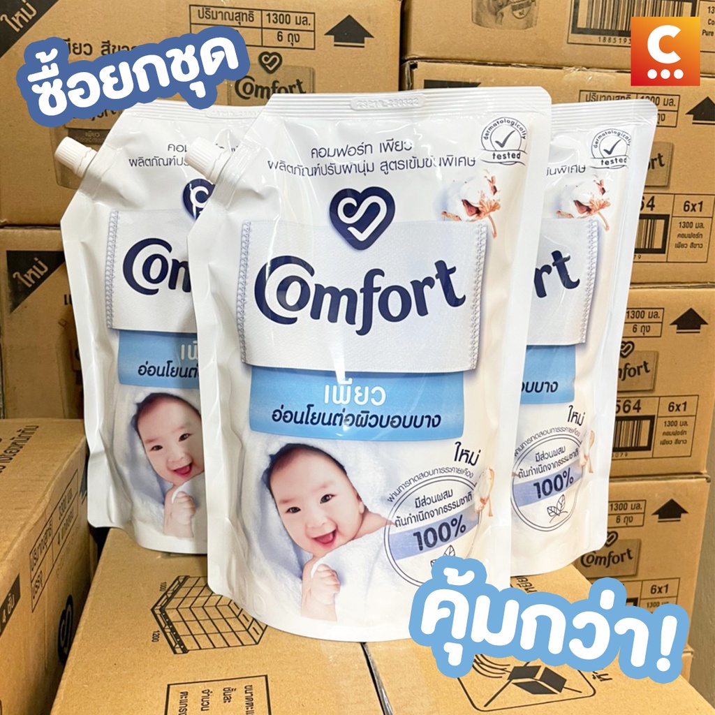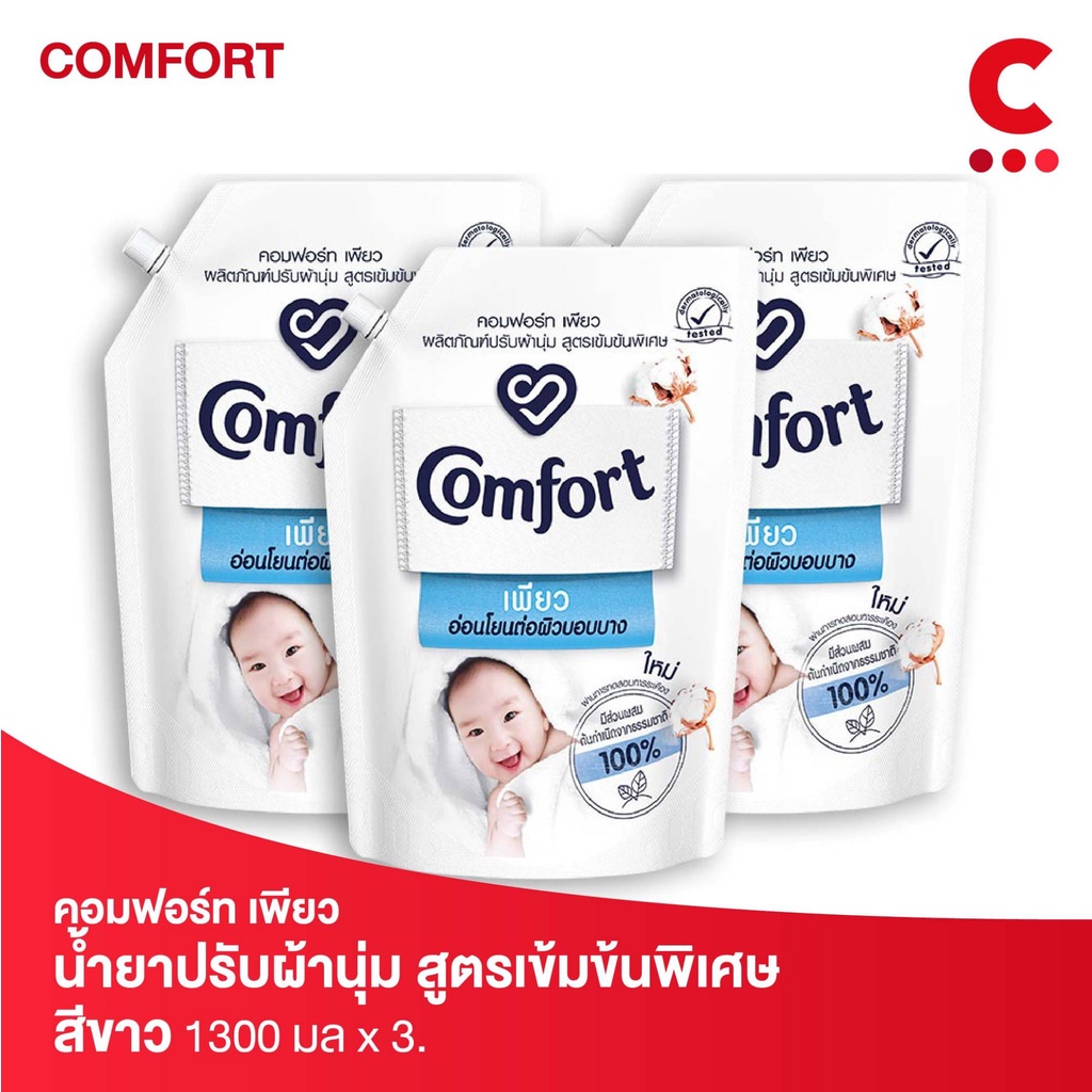 Comfort คอมฟอร์ท เพียว น้ำยาปรับผ้านุ่มสูตรเข้มข้นพิเศษ ชนิดเติม 1300 มล. แพ็ค 3 ชิ้น