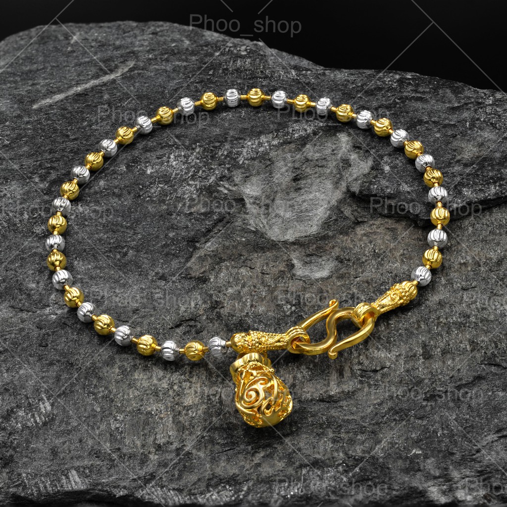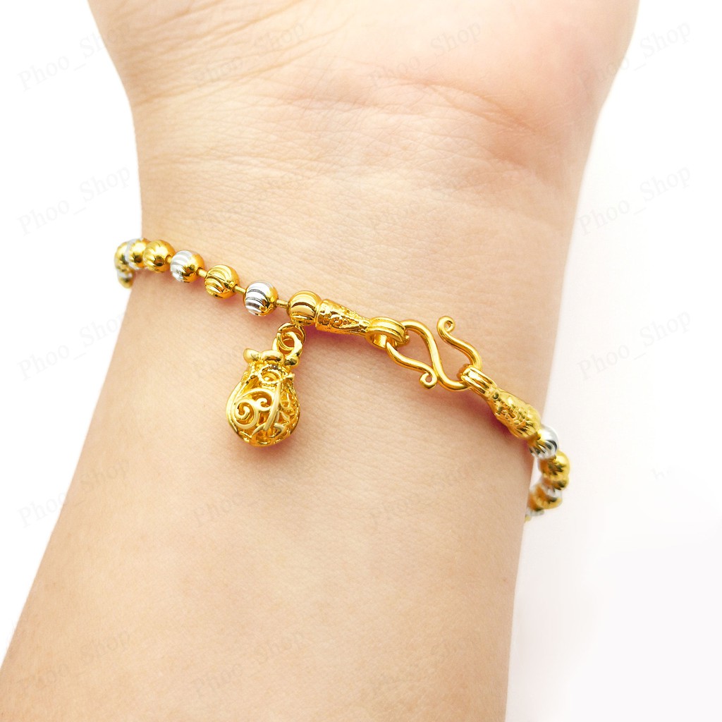 สร้อยข้อมือสแตนเลส สร้อยข้อมือ สองกษัตริย์พร้อมจี้ถุงทอง นำโชค เพื่อความเป็นศิริมงคล # 77 ☁️